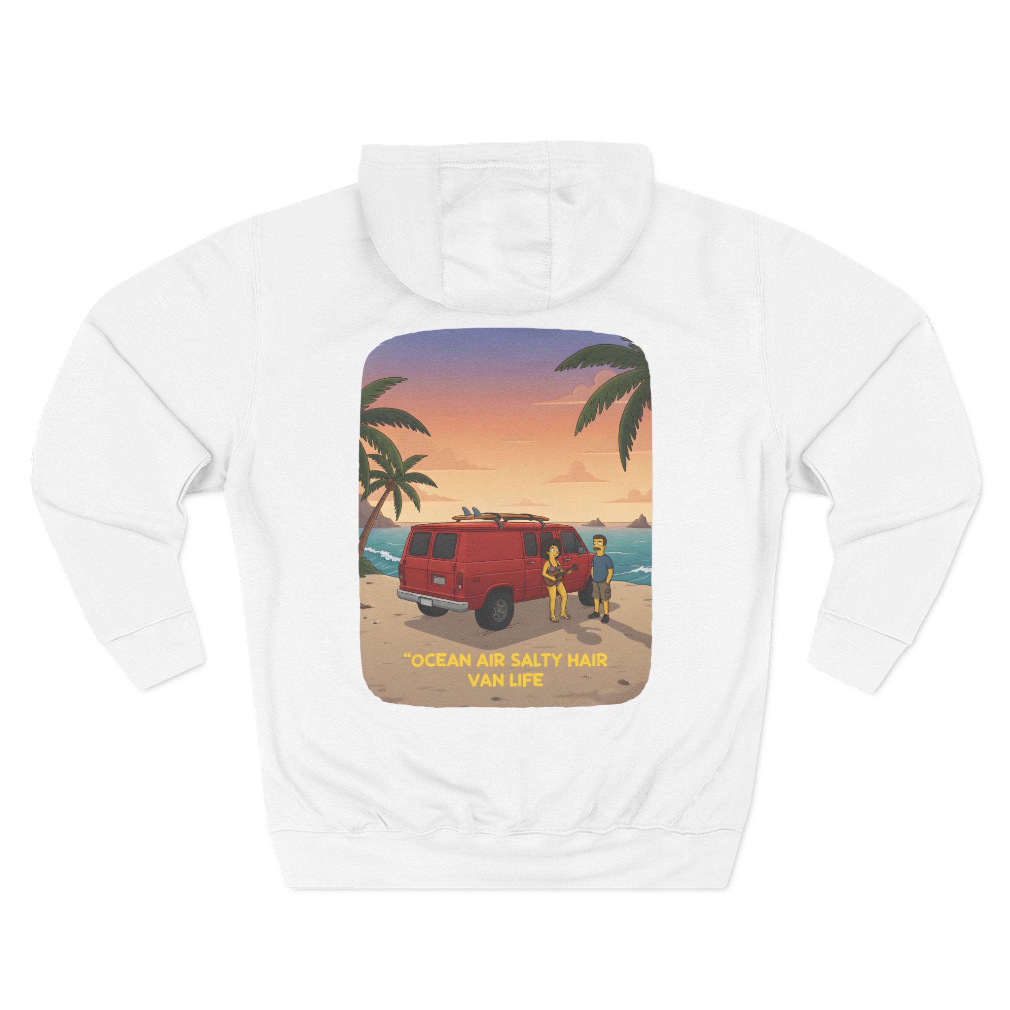 Three-Panel Fleece Hoodie – “Ocean Air Salty Hair Van Life” Design Sitcom-Line