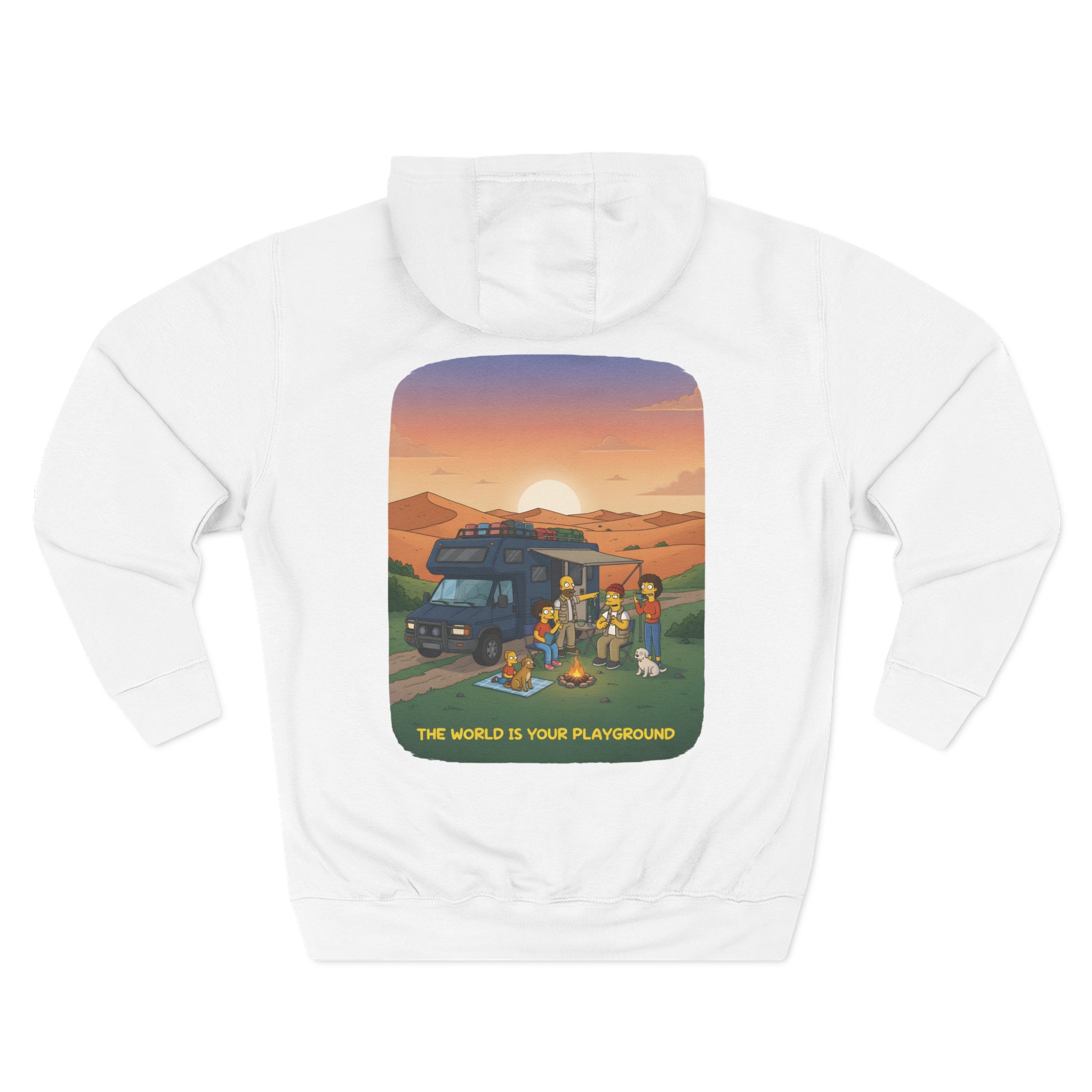 Three-Panel Fleece Hoodie – “The World Is Your playground” Design Sitcom-Line