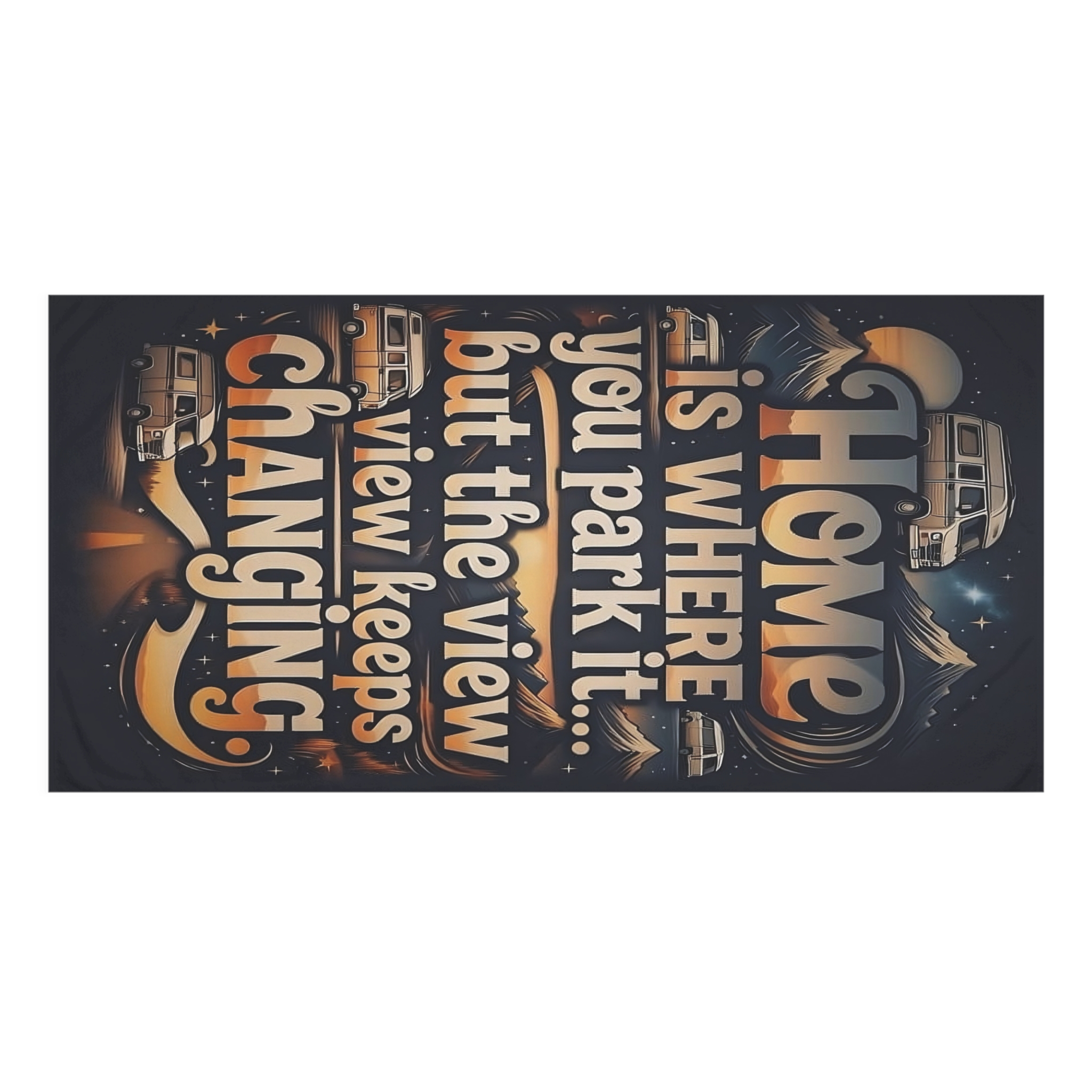 Beach Towel — “Home Is Where You Park It -But The View keep Changing” Camper Van Travel Towel