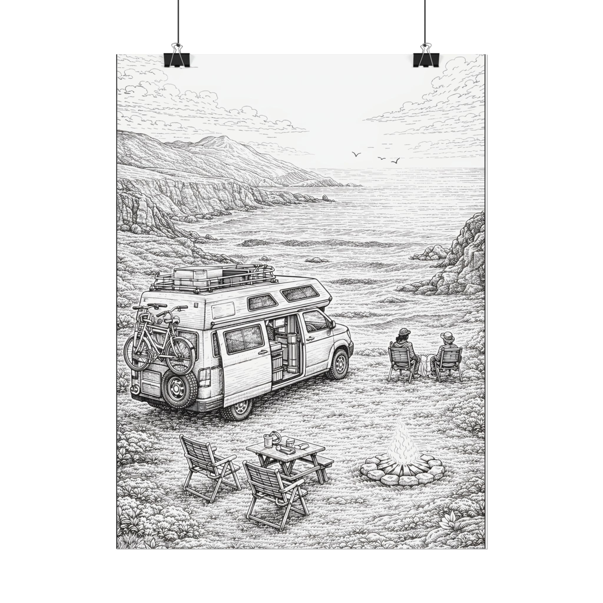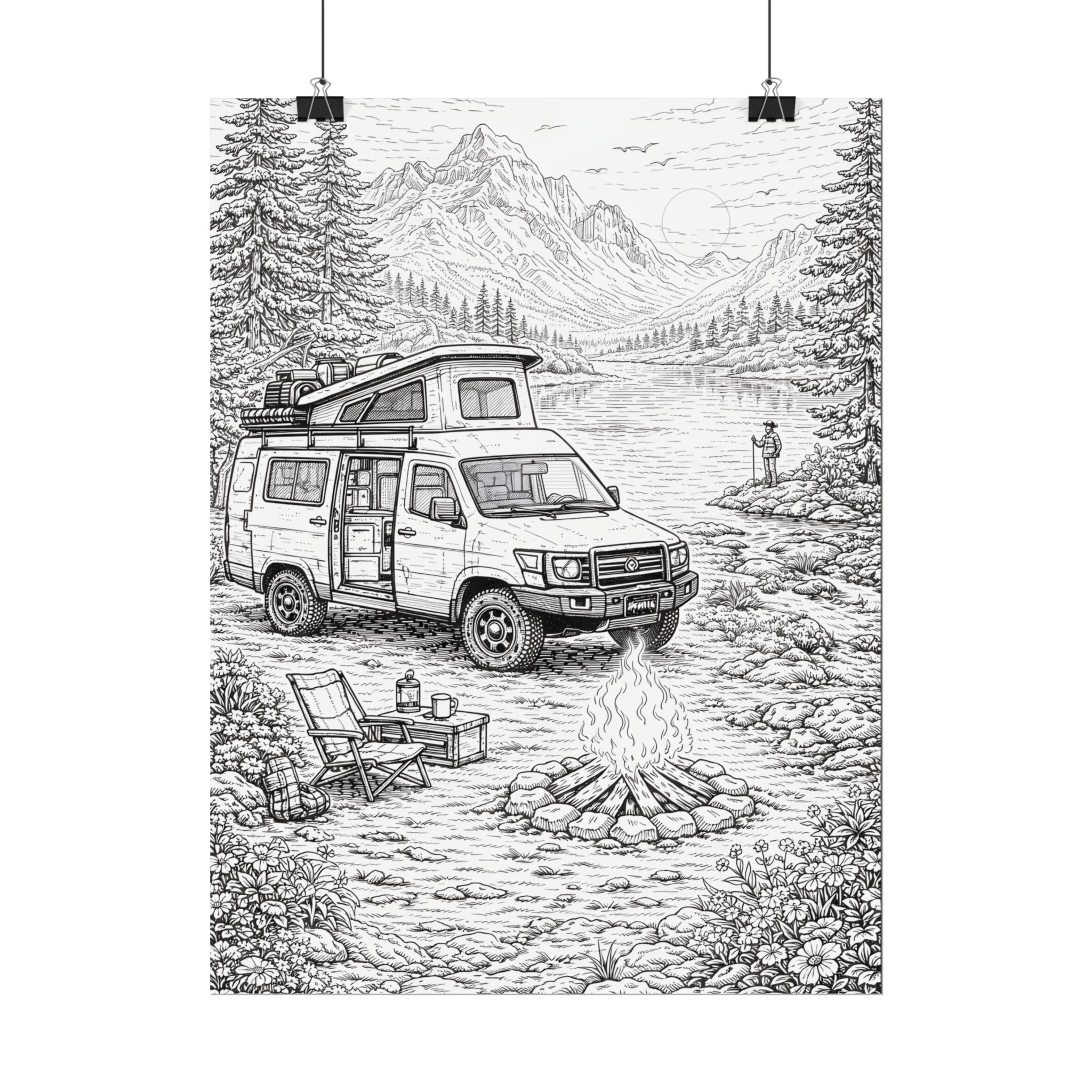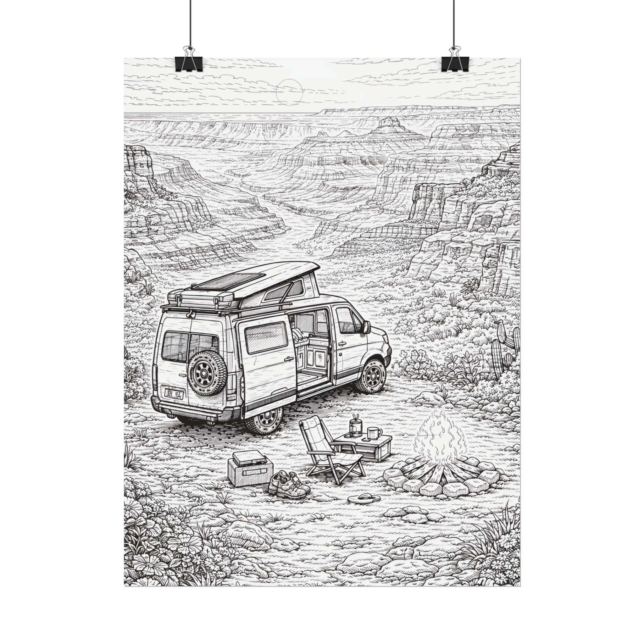 Campervan Poster — Vintage RV Camping Landscape Wall Art