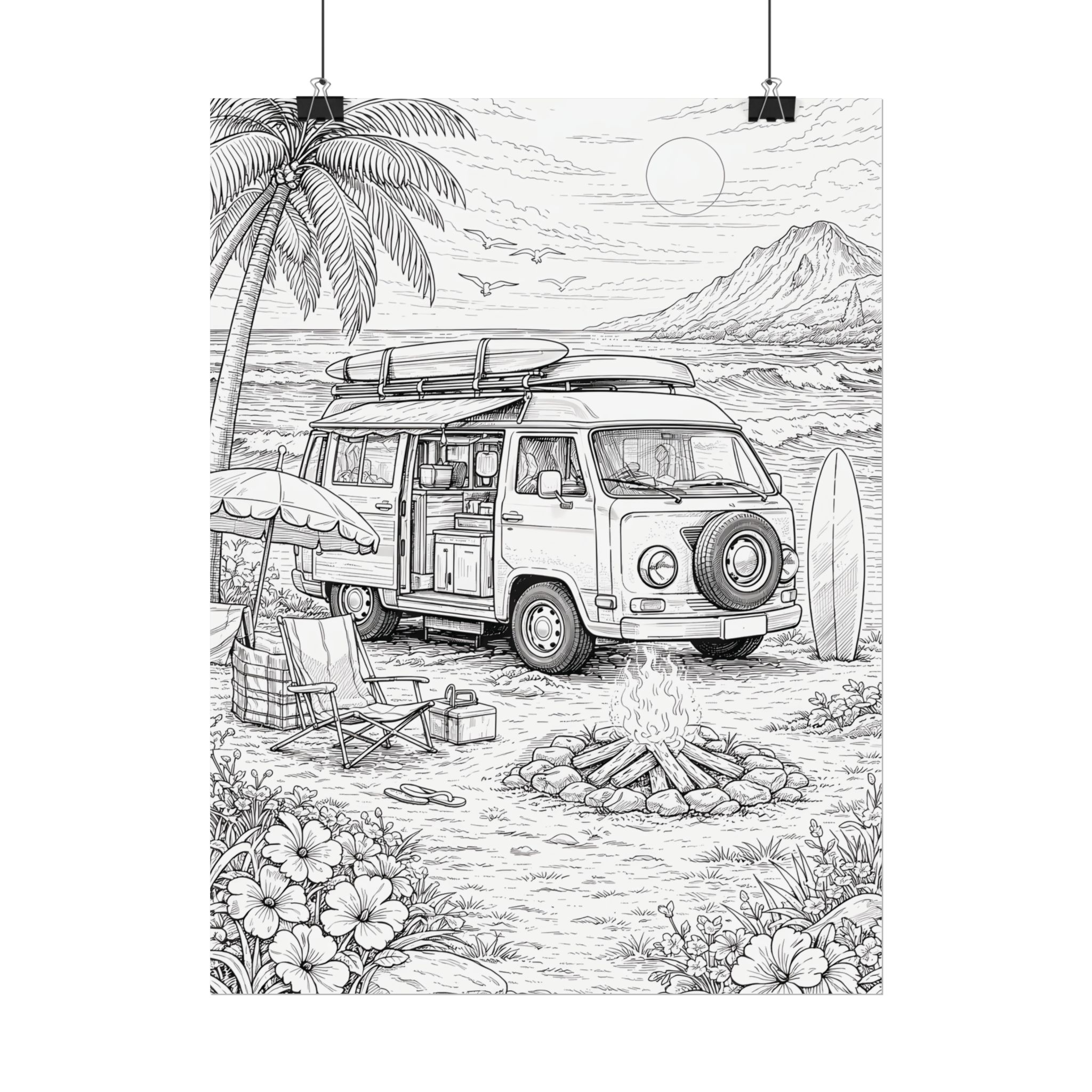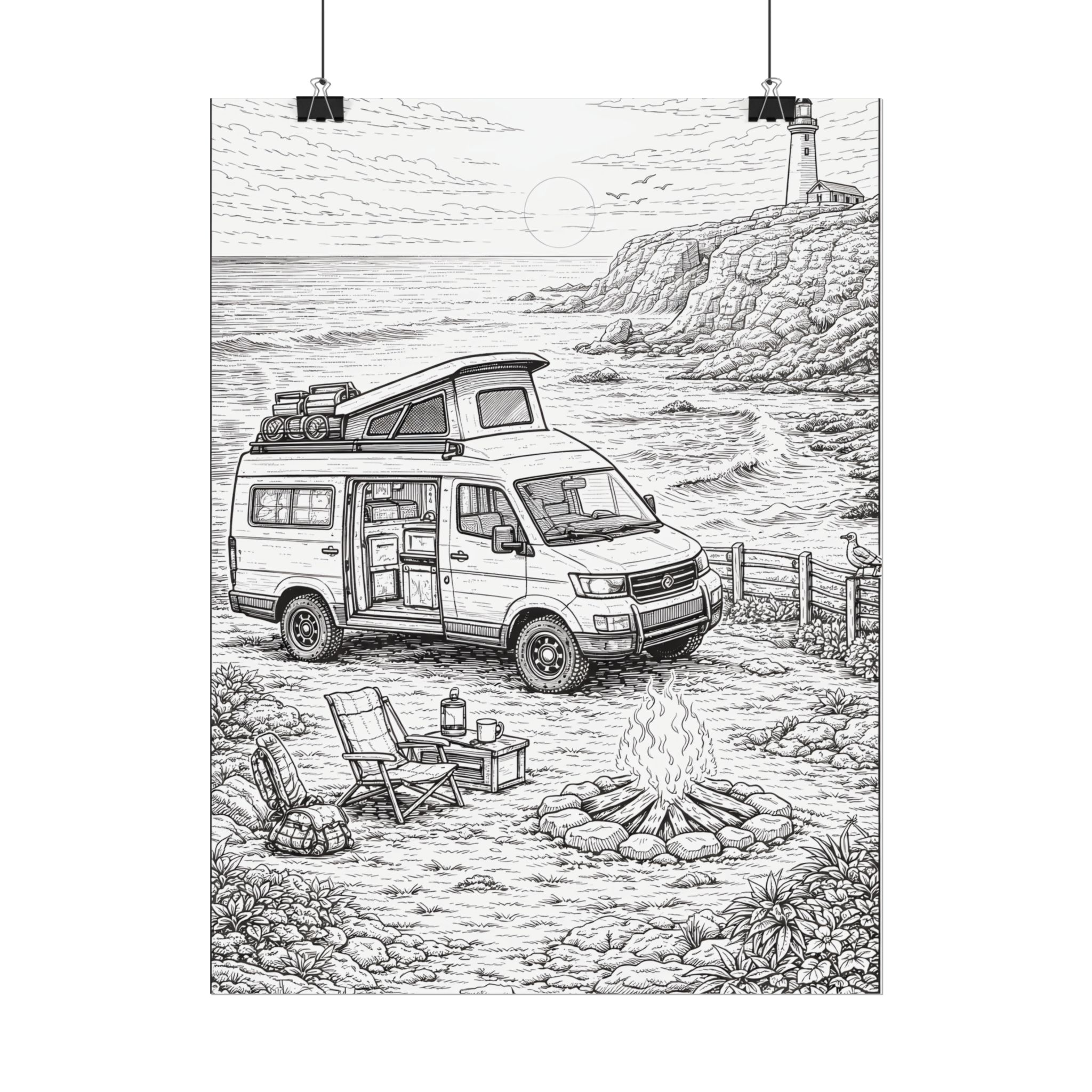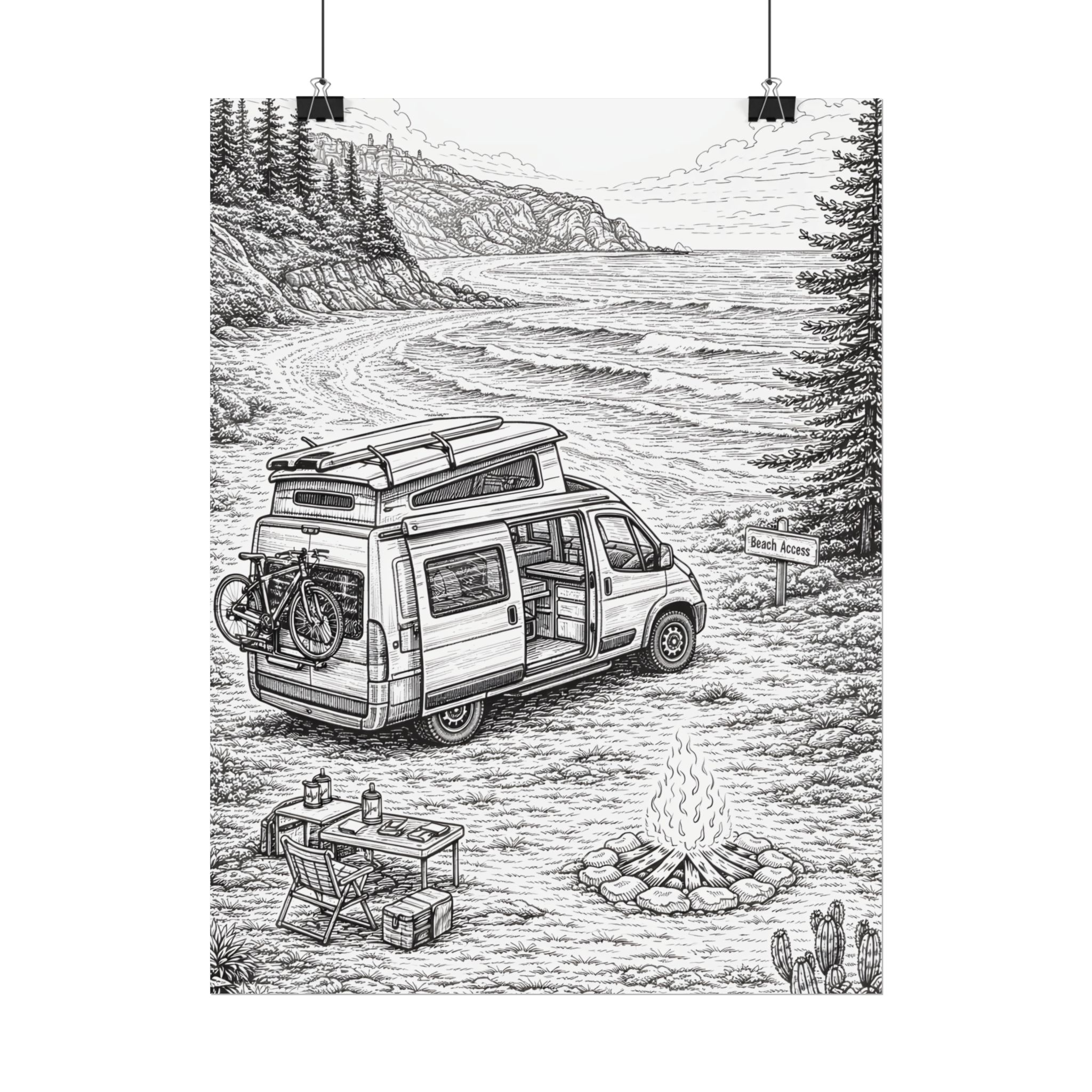Campervan Poster — Vintage RV Camping Landscape Wall Art