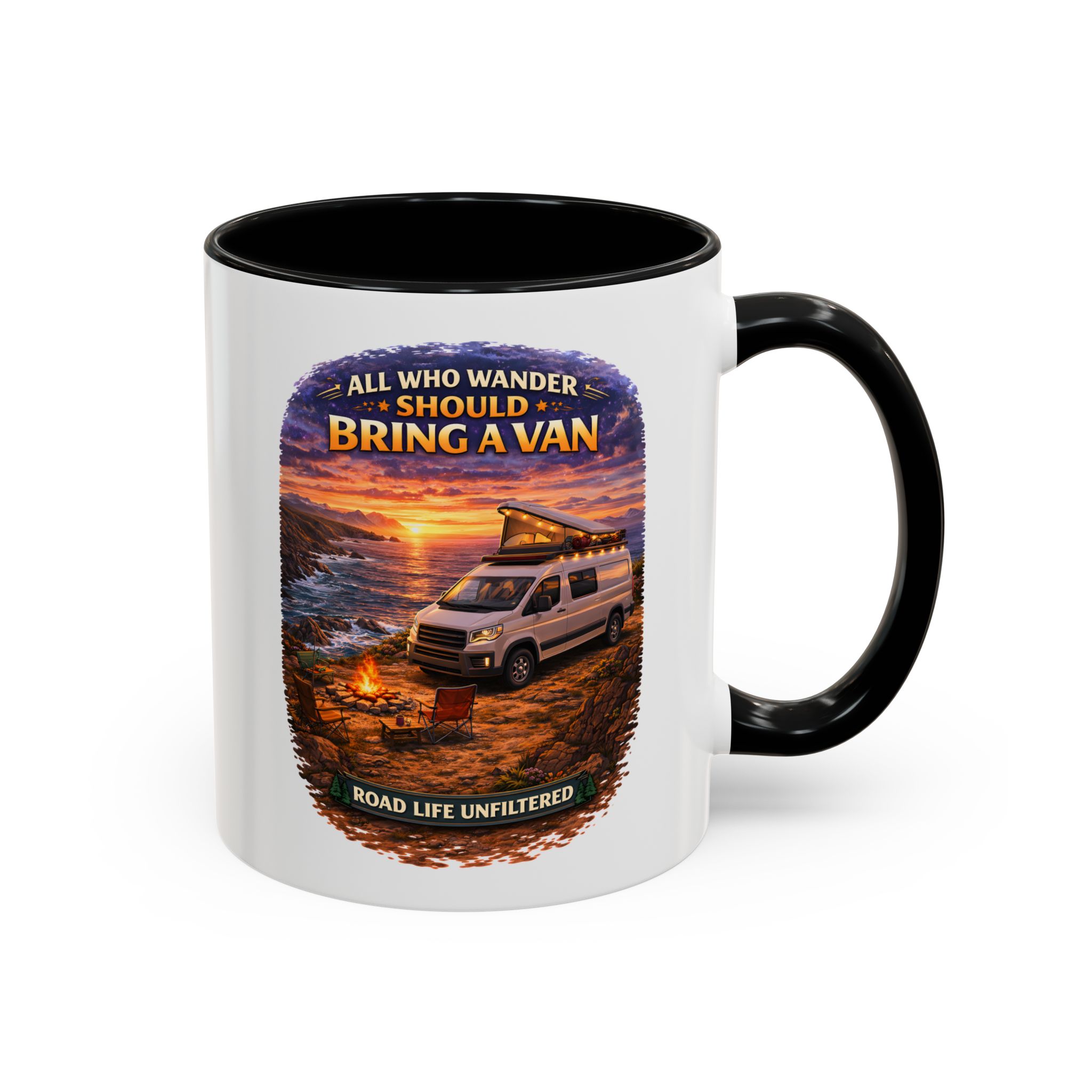 Accent Coffee Mug (11, 15oz) — “All Who wander Should Bring A Van” Design Scenic-Line