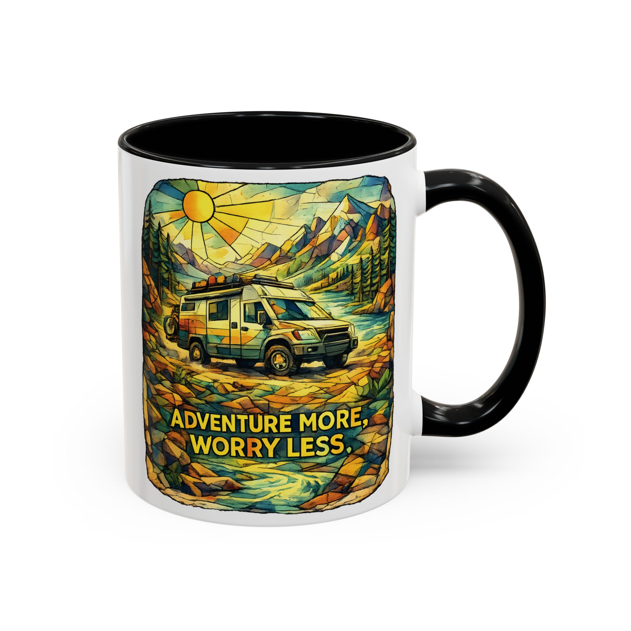 Accent Coffee Mug (11, 15oz) — “Adventure More Worry Less” Design Cubic-Line