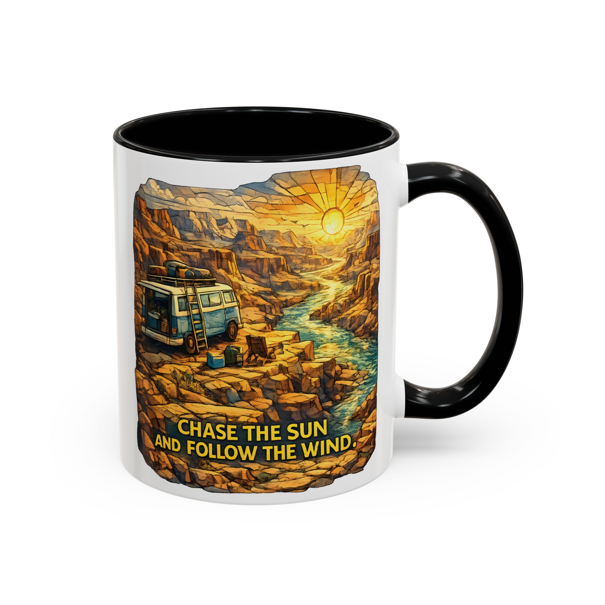 Accent Coffee Mug (11, 15oz) — “Chase The Sun And Follow The Wind” Design Cubic-Line