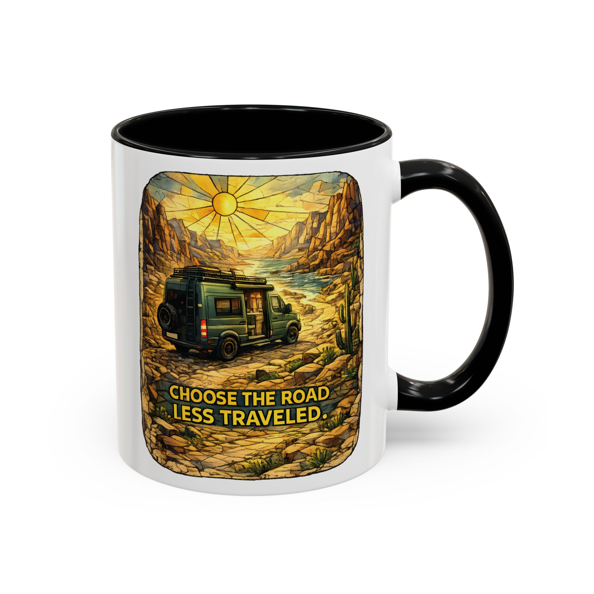 Accent Coffee Mug (11, 15oz) — “Choose The Road Less Traveled” Design Cubic-Line