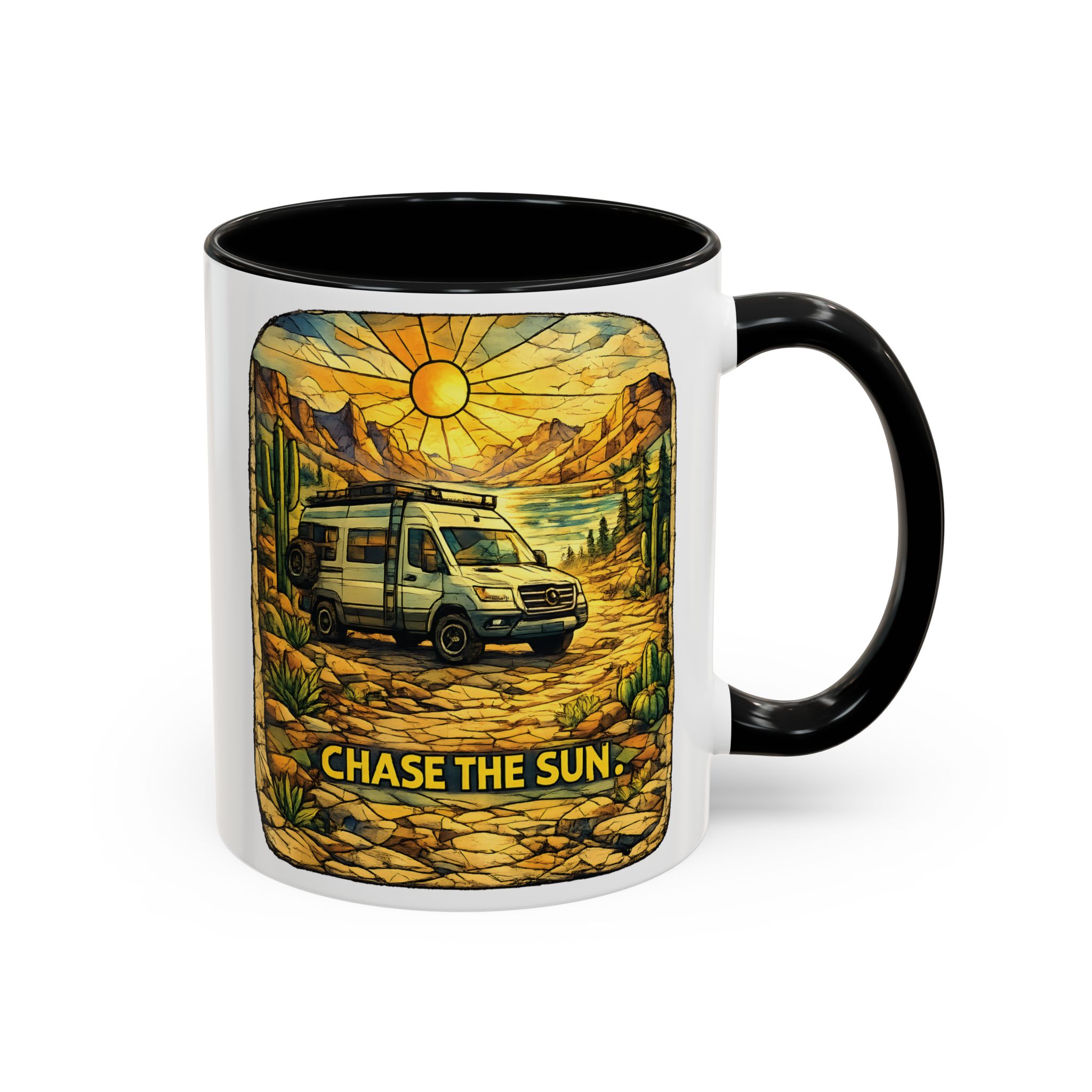 Accent Coffee Mug (11, 15oz) — “Chase The Sun” Design Cubic-Line