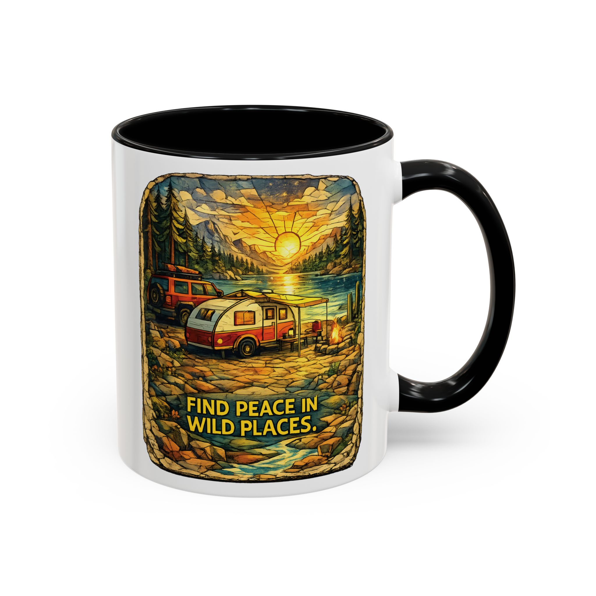 Accent Coffee Mug (11, 15oz) — “Find Peace In Wild Places” Design Cubic-Line