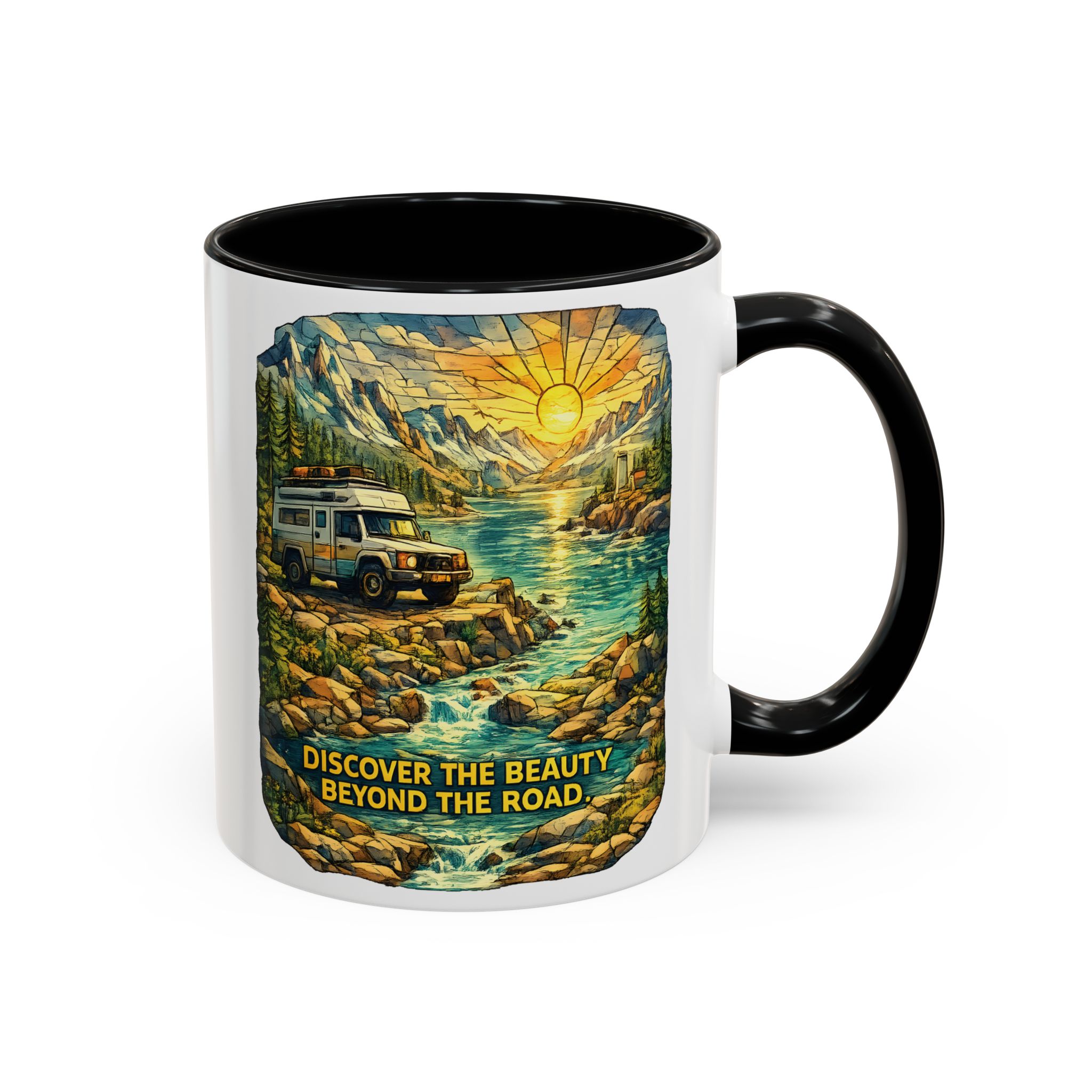 Accent Coffee Mug (11, 15oz) — “Discover The Bieuty Beyond The Road” Design Cubic-Line