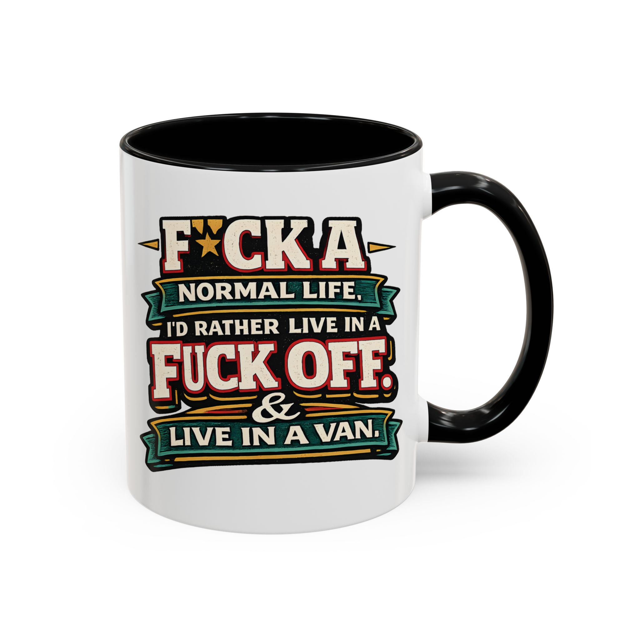 Accent Coffee Mug (11, 15oz) — “Fuck A Normal Life” Design F**K-Line