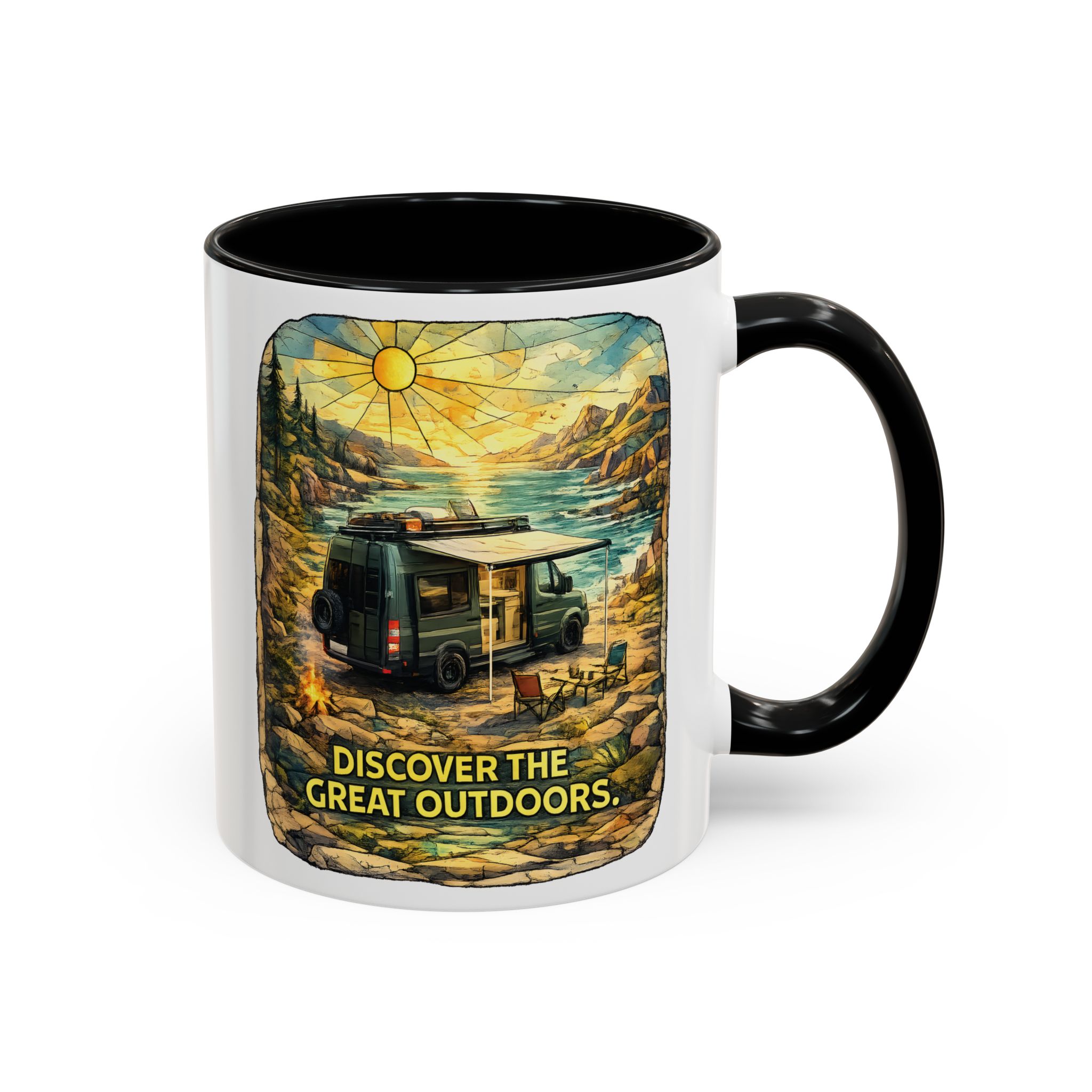 Accent Coffee Mug (11, 15oz) — “Discover The Great Outdoors” Design Cubic-Line