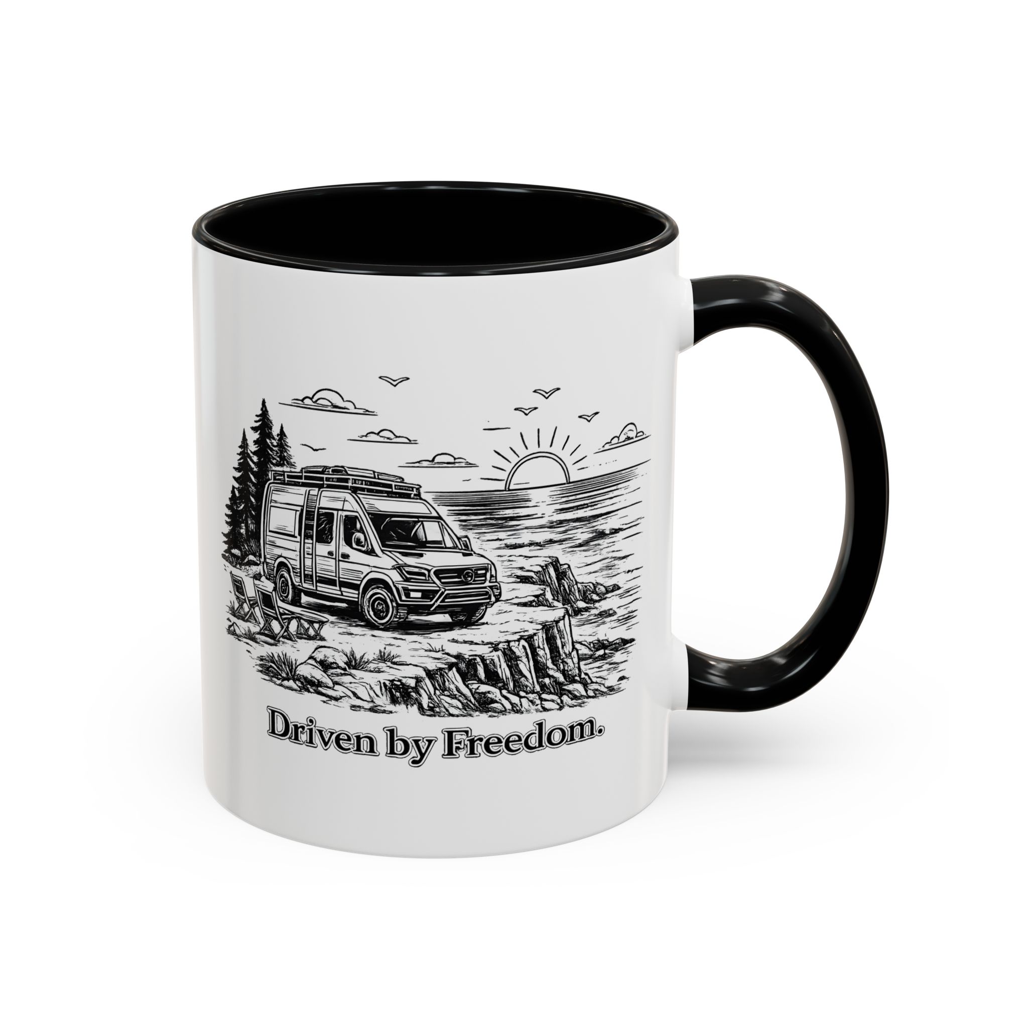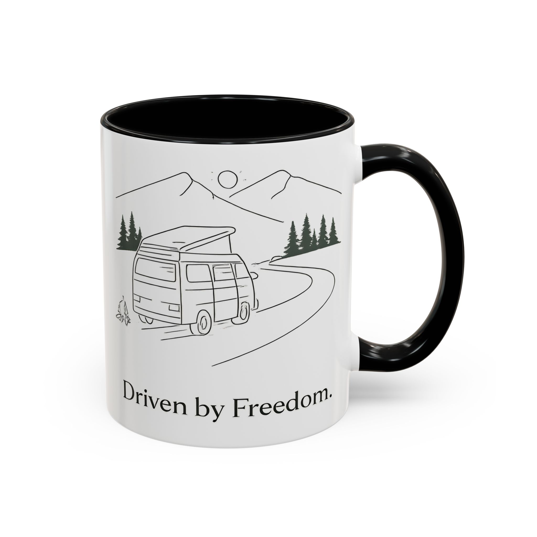 Accent Coffee Mug (11, 15oz) — “Driven By Freedom” Design Minimal-Line