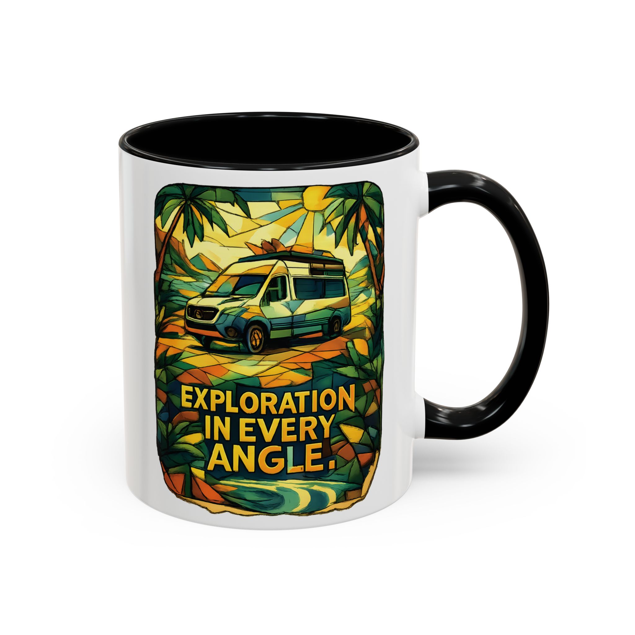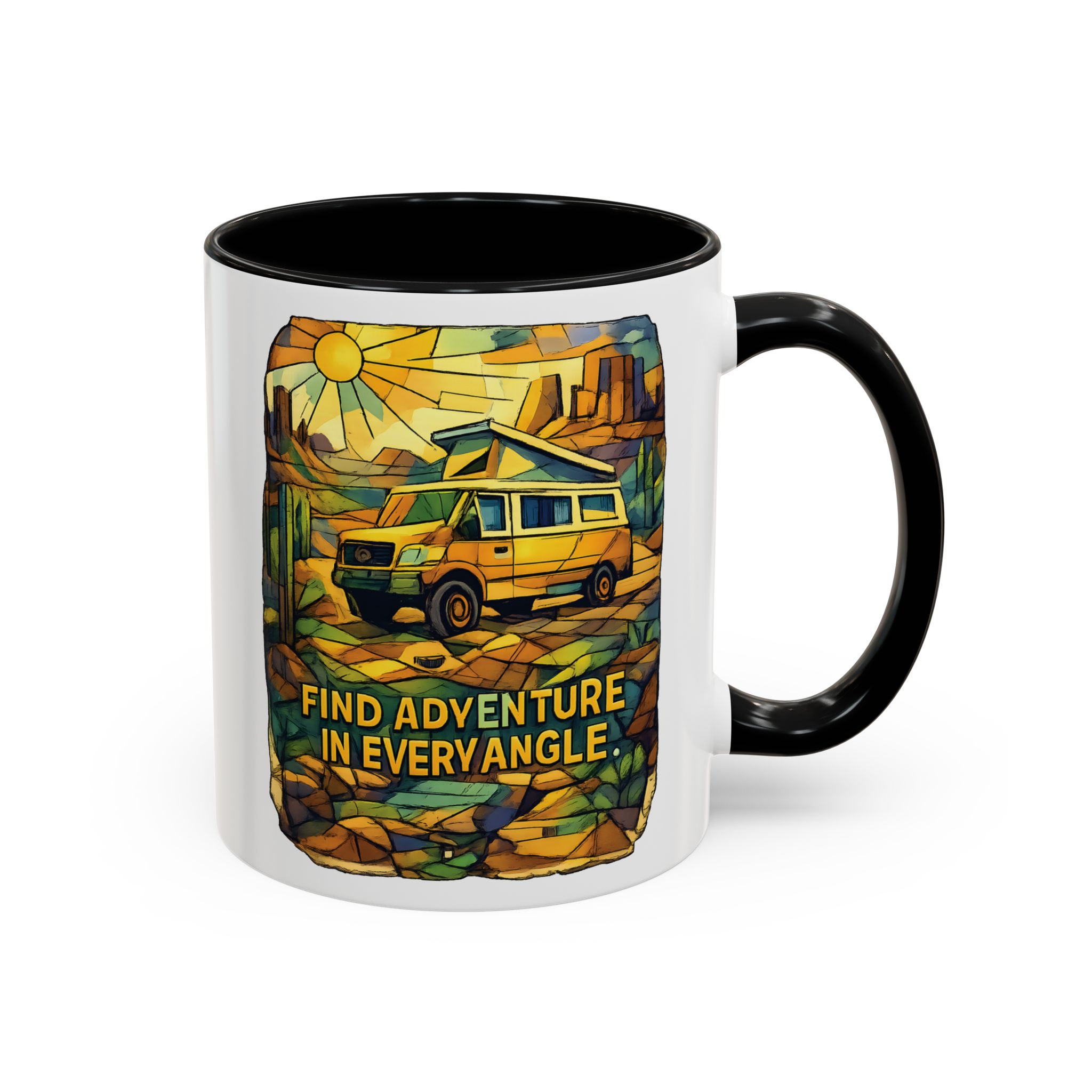 Accent Coffee Mug (11, 15oz) — “Find Adventure In Every Corner” Design Cubic-Line