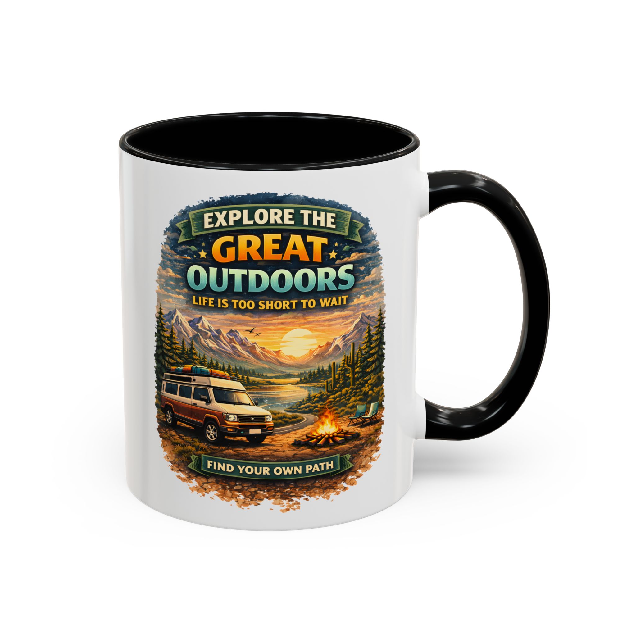 Accent Coffee Mug (11, 15oz) — “Explore The Great Outdoors” Design Scenic-Line