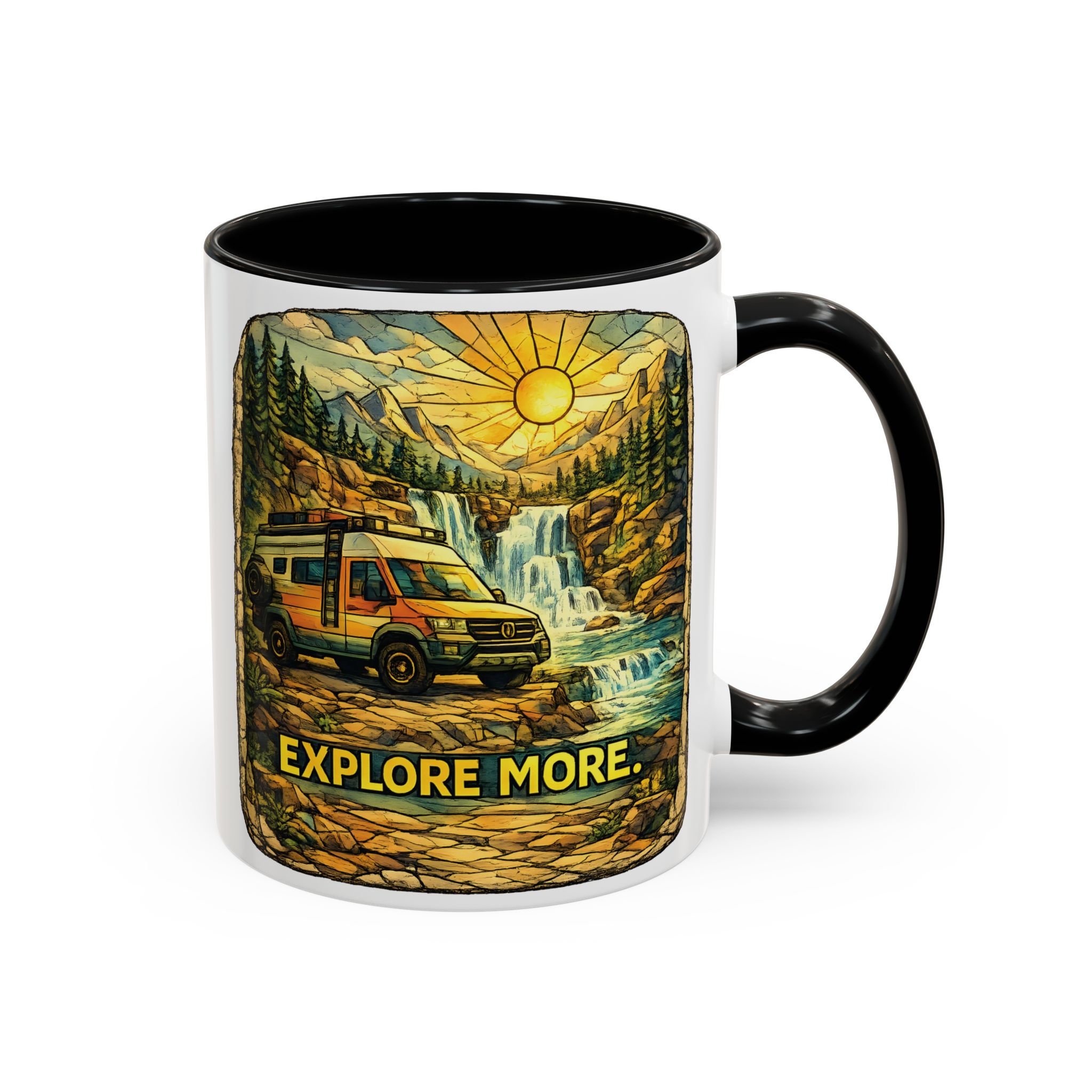Accent Coffee Mug (11, 15oz) — “Explore More” Design Cubic-Line