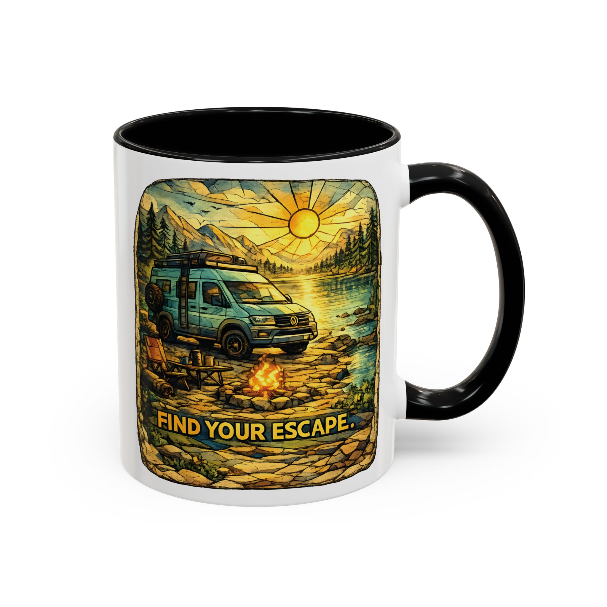 Accent Coffee Mug (11, 15oz) — “Find Your Escape” Design Cubic-Line
