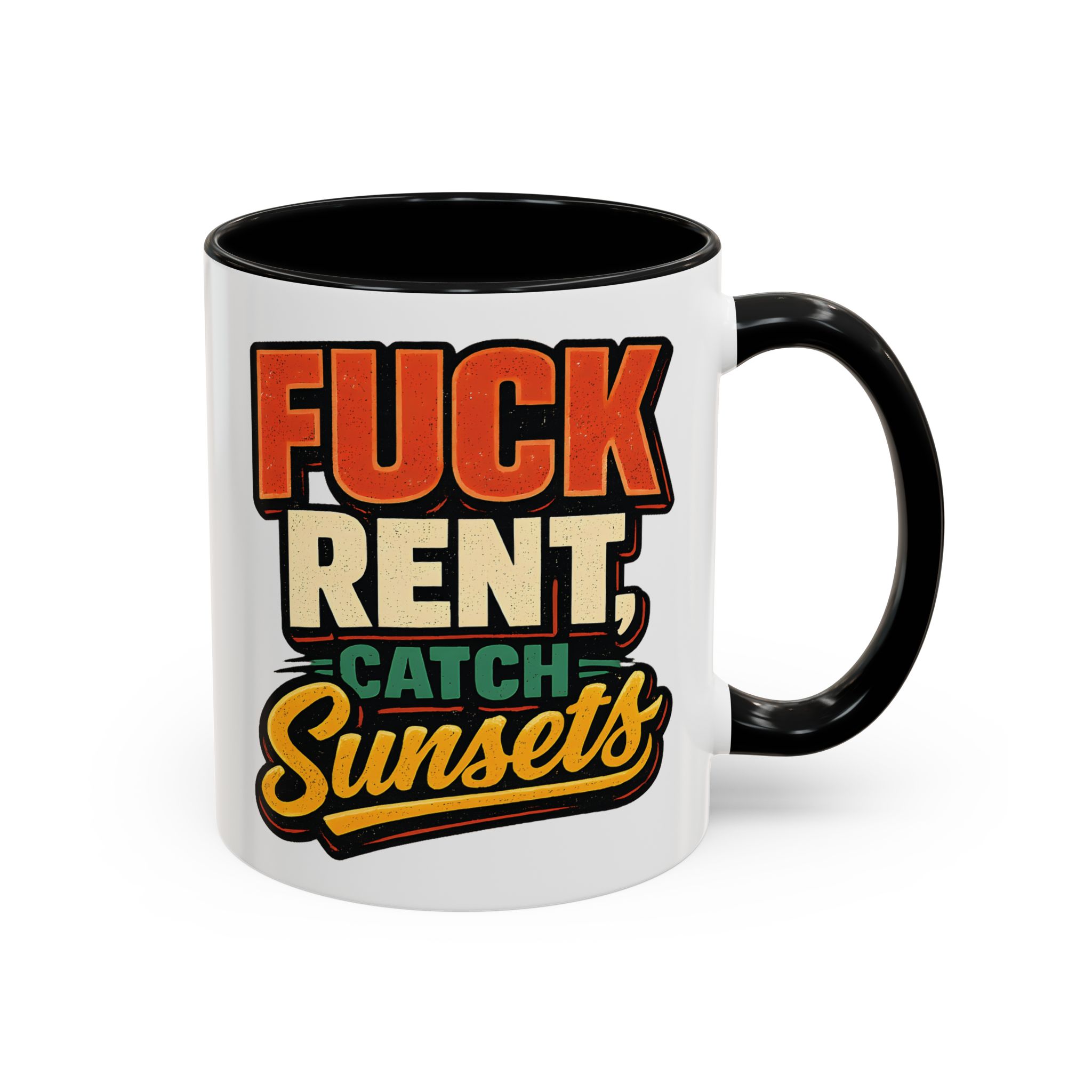 Accent Coffee Mug (11, 15oz) — “Fuck Rent Catch Sunsets” Design F**K-Line