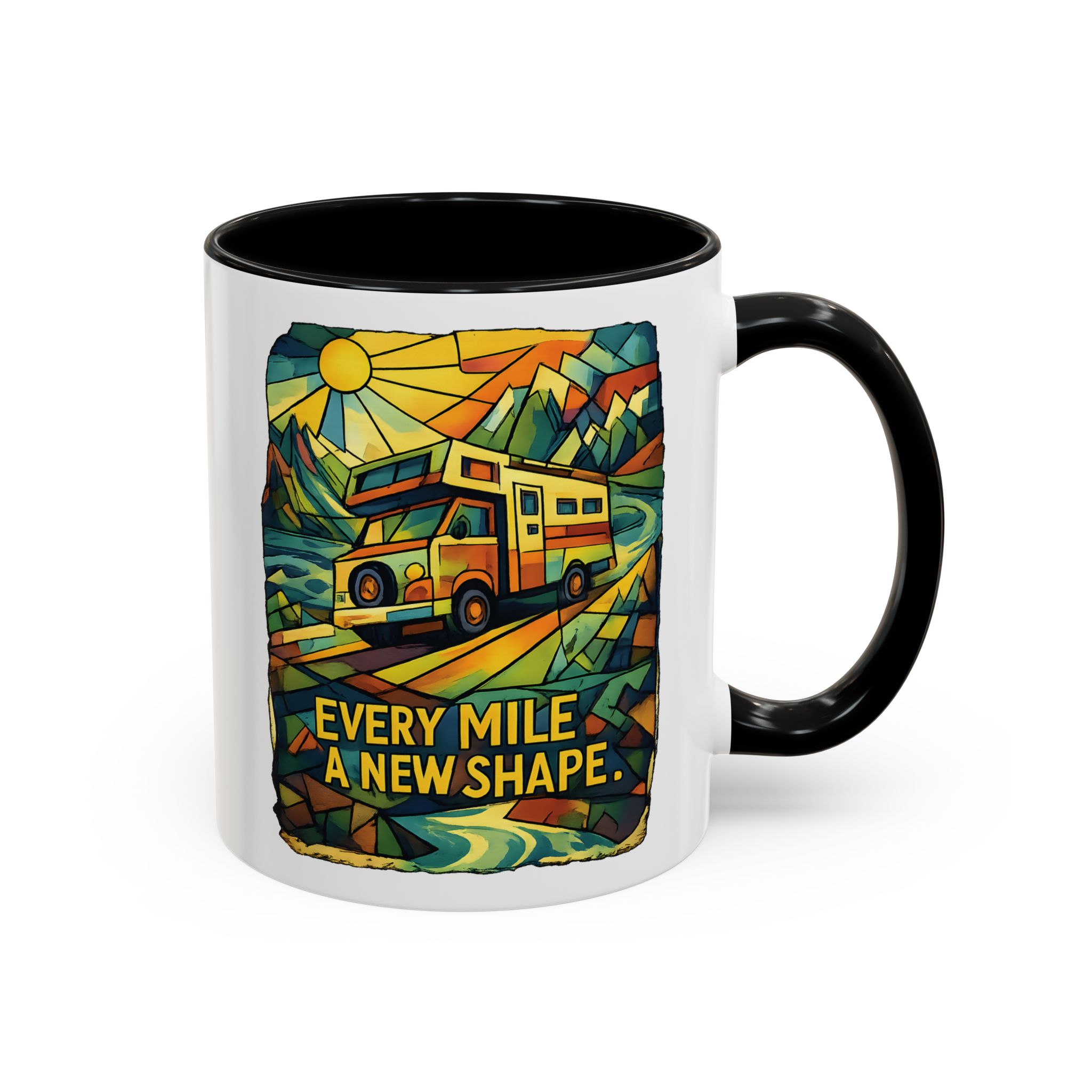 Accent Coffee Mug (11, 15oz) — “Every Mile A New Shape” Design Cubic-Line