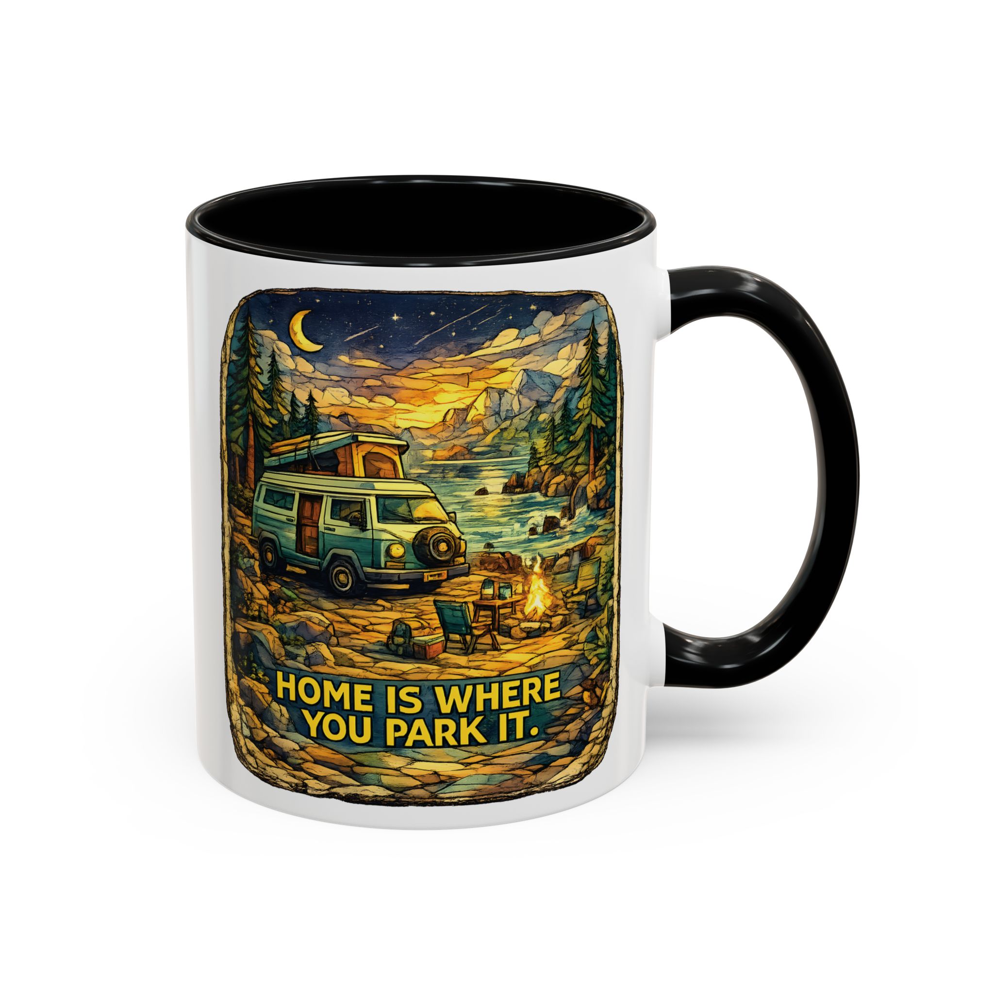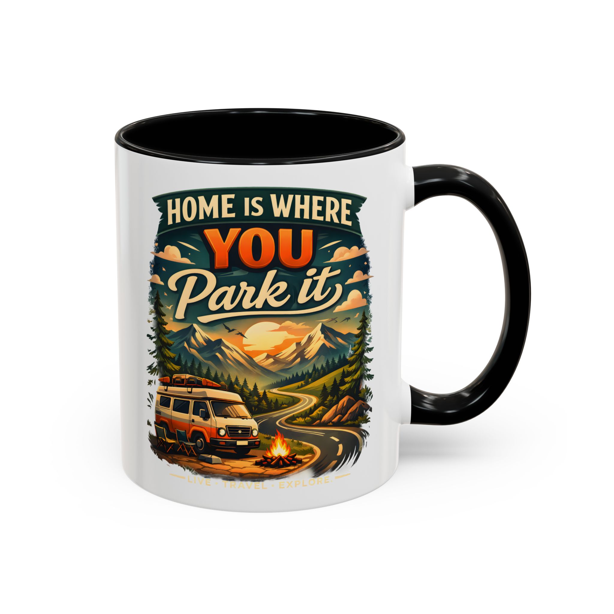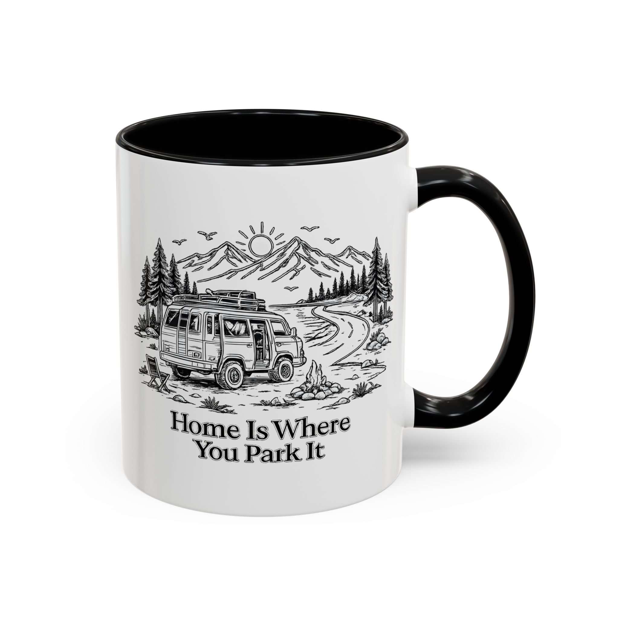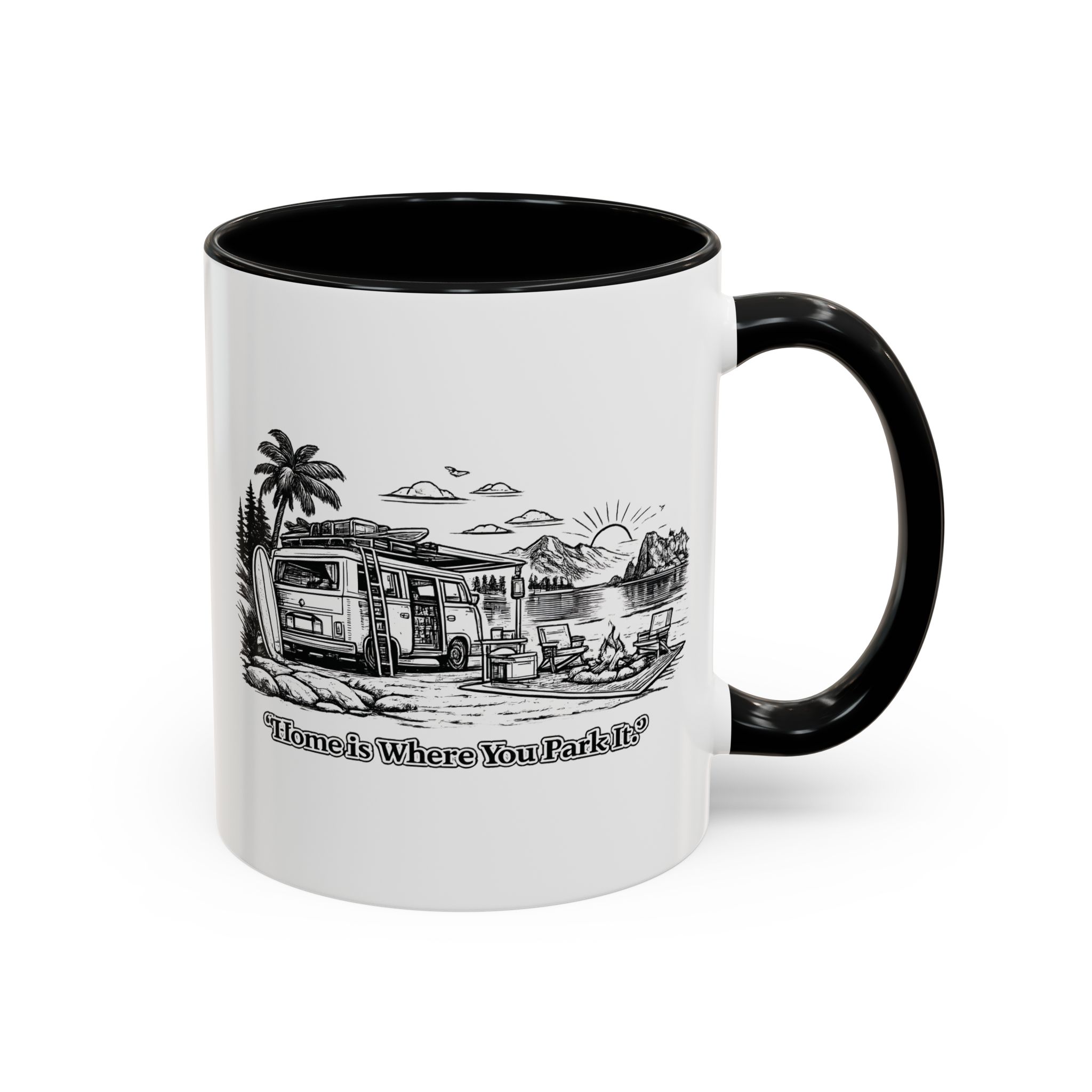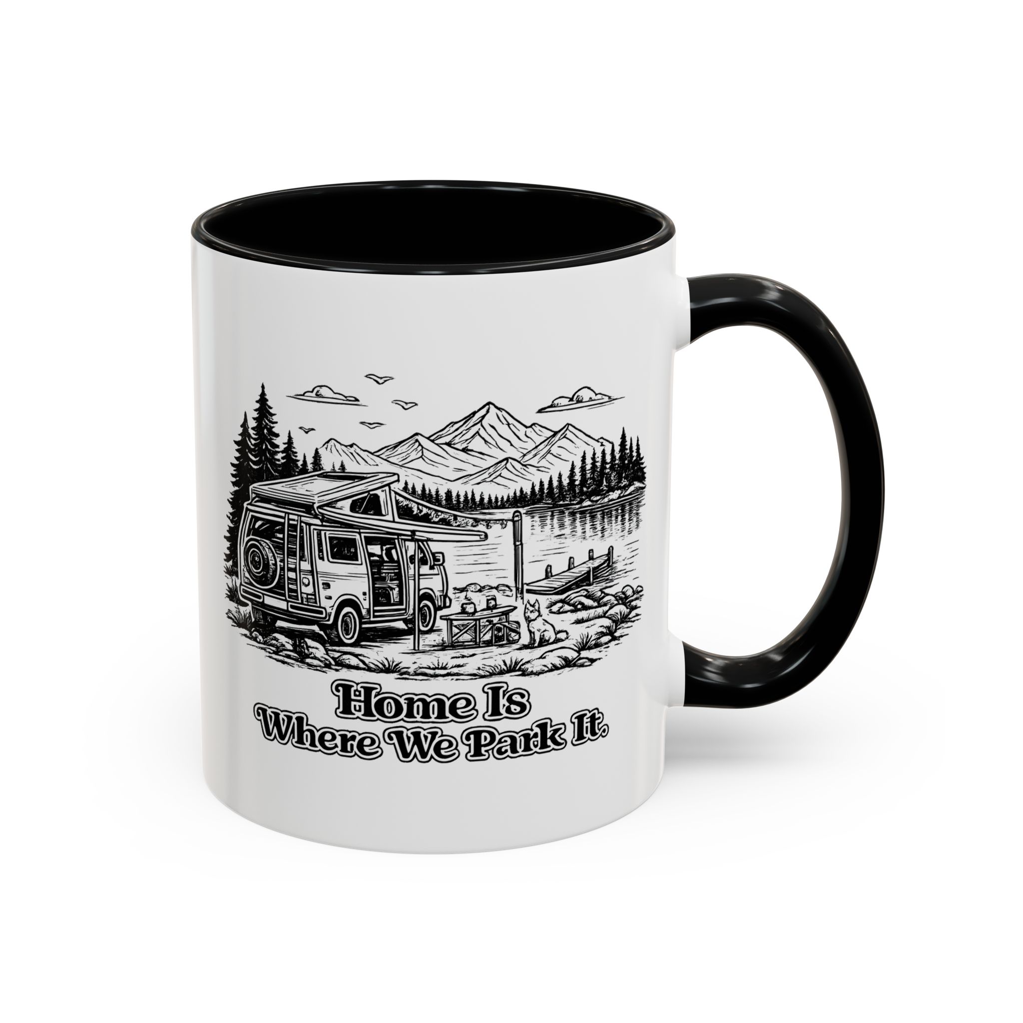 Accent Coffee Mug (11, 15oz) — “Home Is Where You Park It” Design Scenic-Line