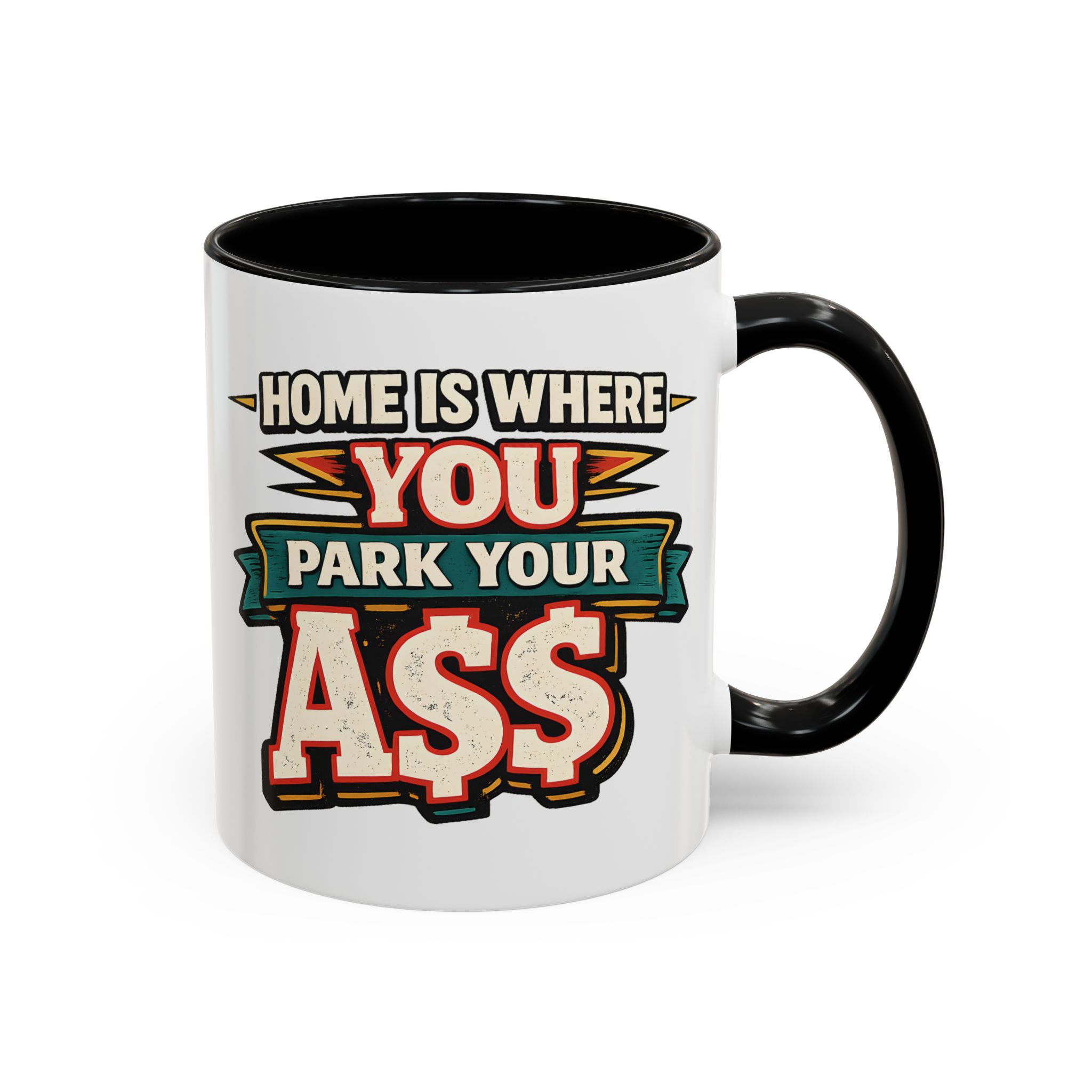Accent Coffee Mug (11, 15oz) — “Home Is Where You Park Your Ass” Design F**K-Line
