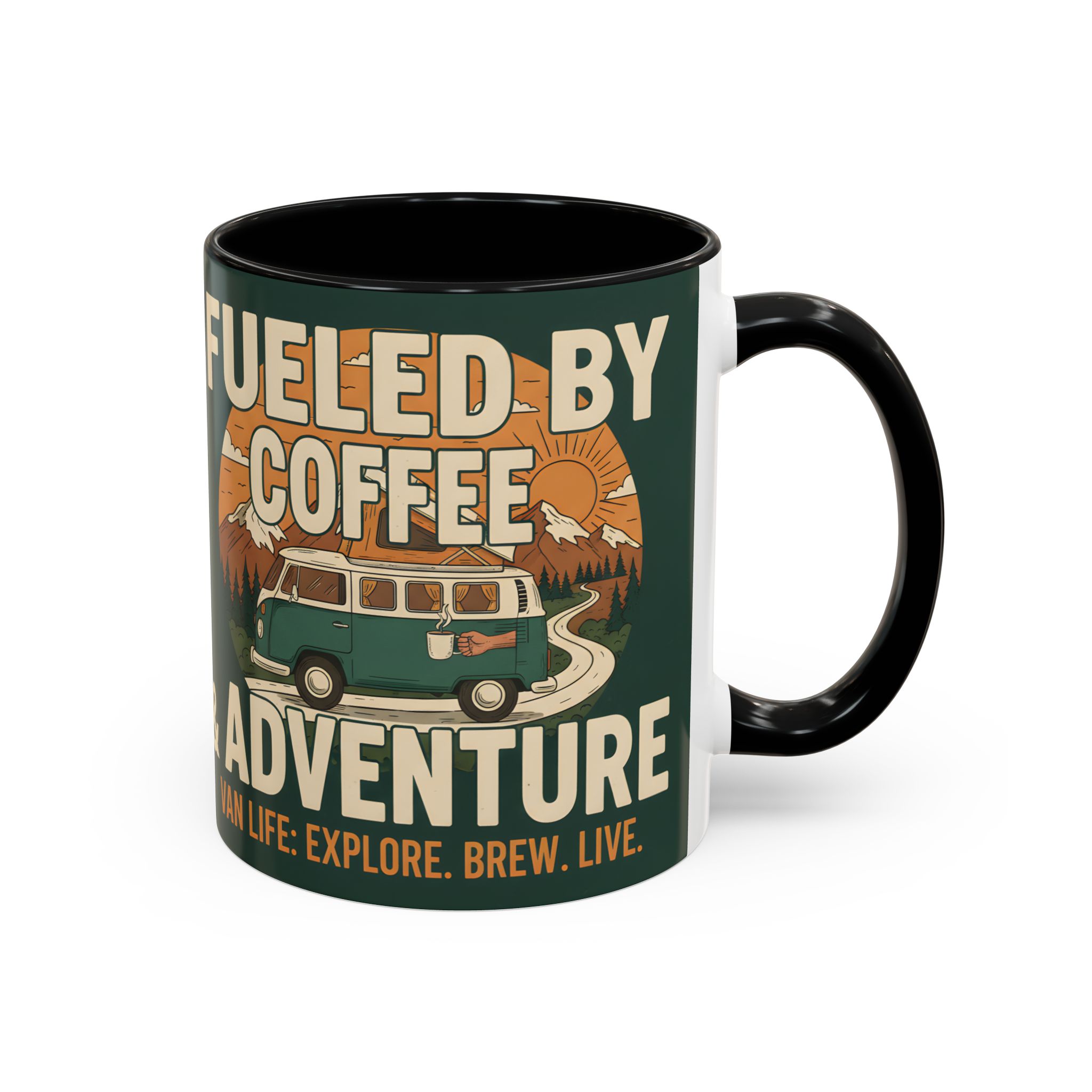 Accent Coffee Mug (11, 15oz) — “Fueled by Coffee & Adventure”