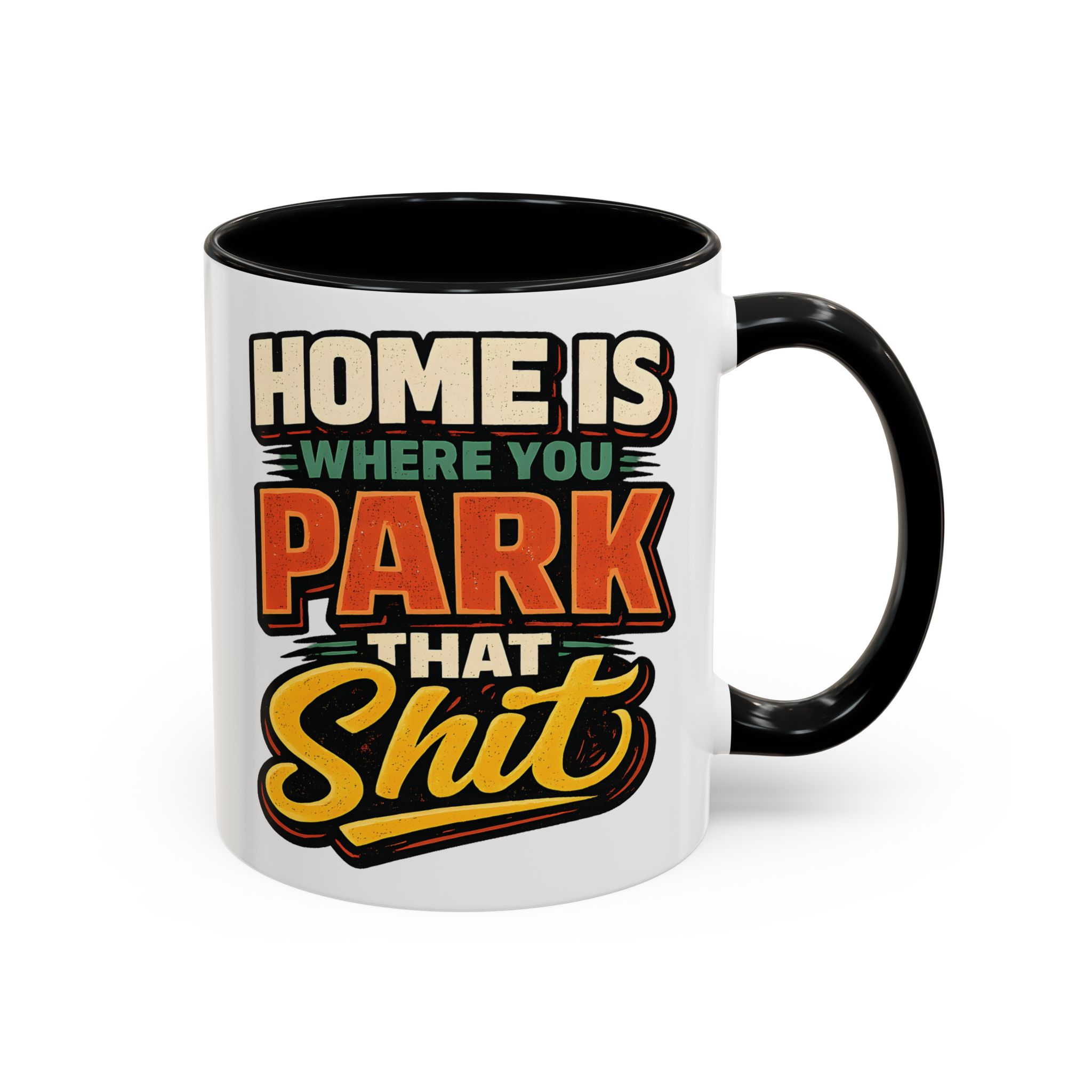 Accent Coffee Mug (11, 15oz) — “Home Is Where You Park That Shit” Design F**K-Line
