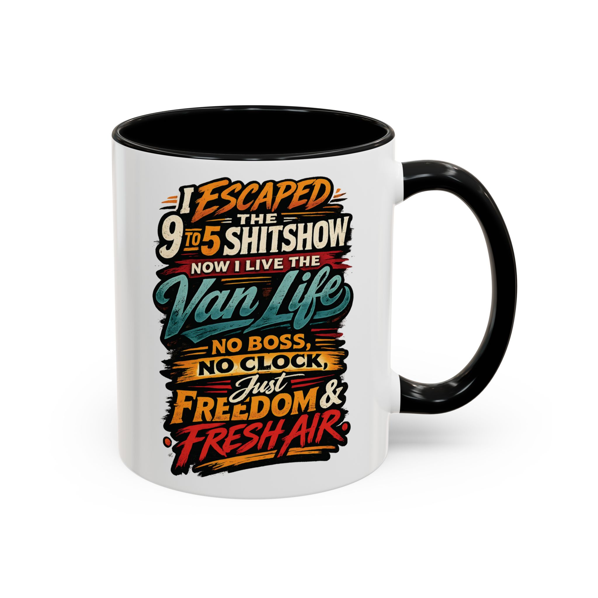 Accent Coffee Mug (11, 15oz) — “I Escaped The 9 To 5” Design F**K-Line