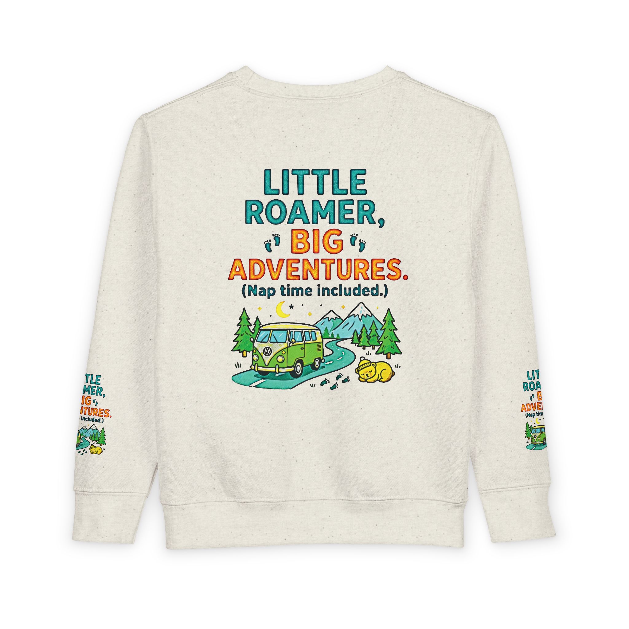 Toddler Sweatshirt(Rabbit Skins) — “Little Roamer, Big Adventures-Nap Time Included” Camper Pullover