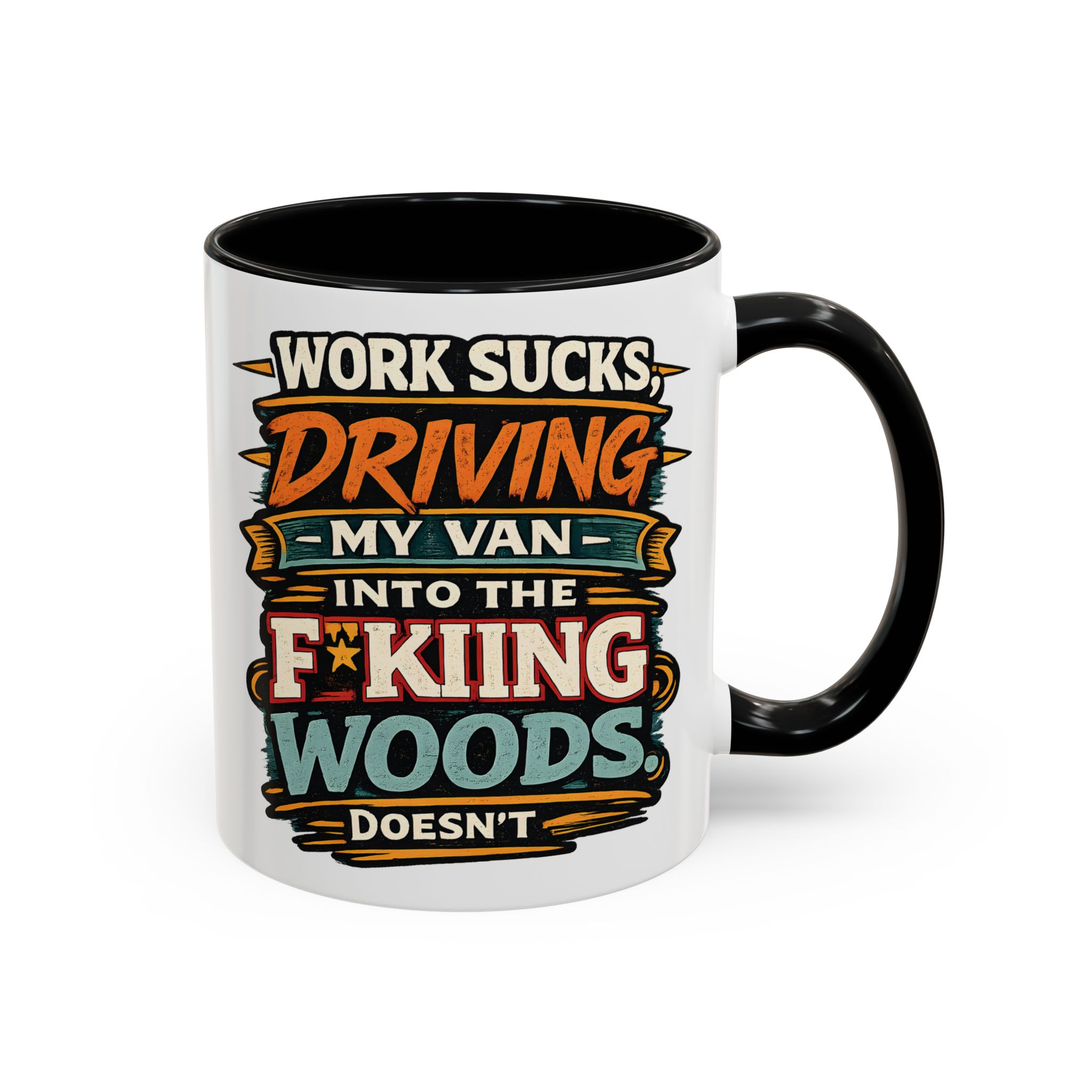 Accent Coffee Mug (11, 15oz) — “Work Sucks” Design F**K-Line