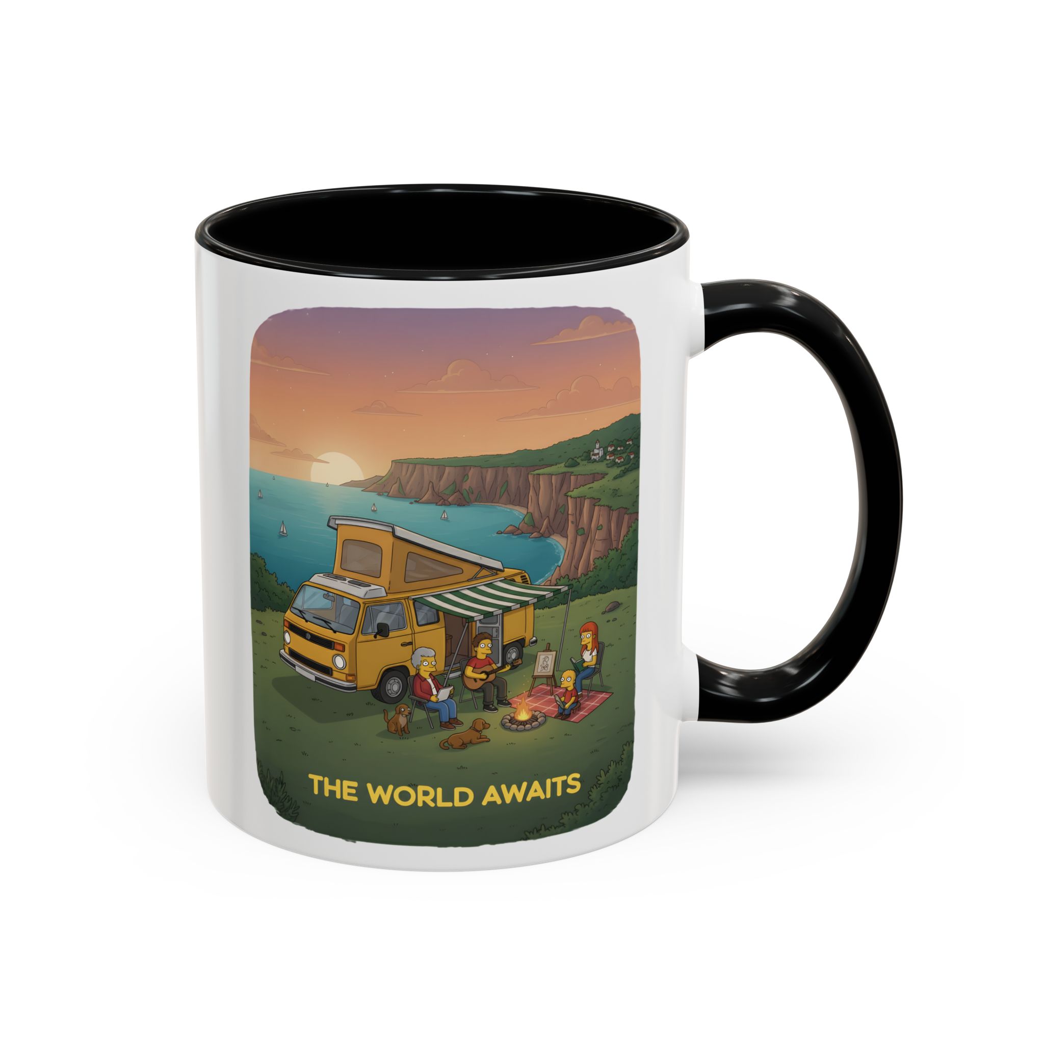 Accent Coffee Mug (11, 15oz) — “The World Awaits” Design Sitcom-Line