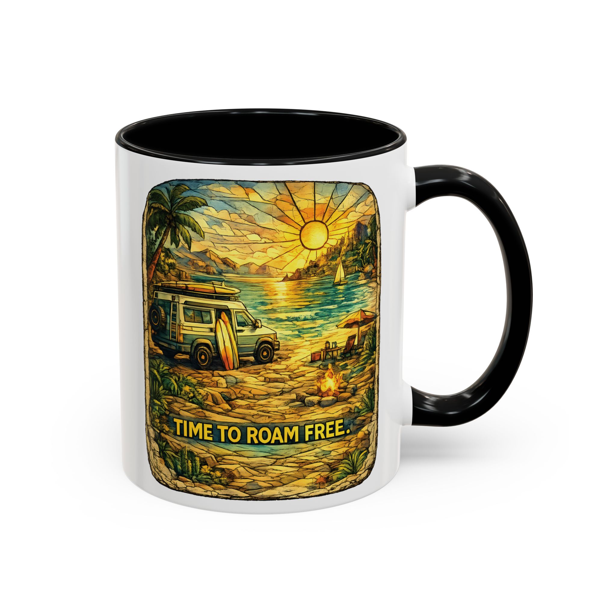 Accent Coffee Mug (11, 15oz) — “Time To Roam Free” Design Cubic-Line