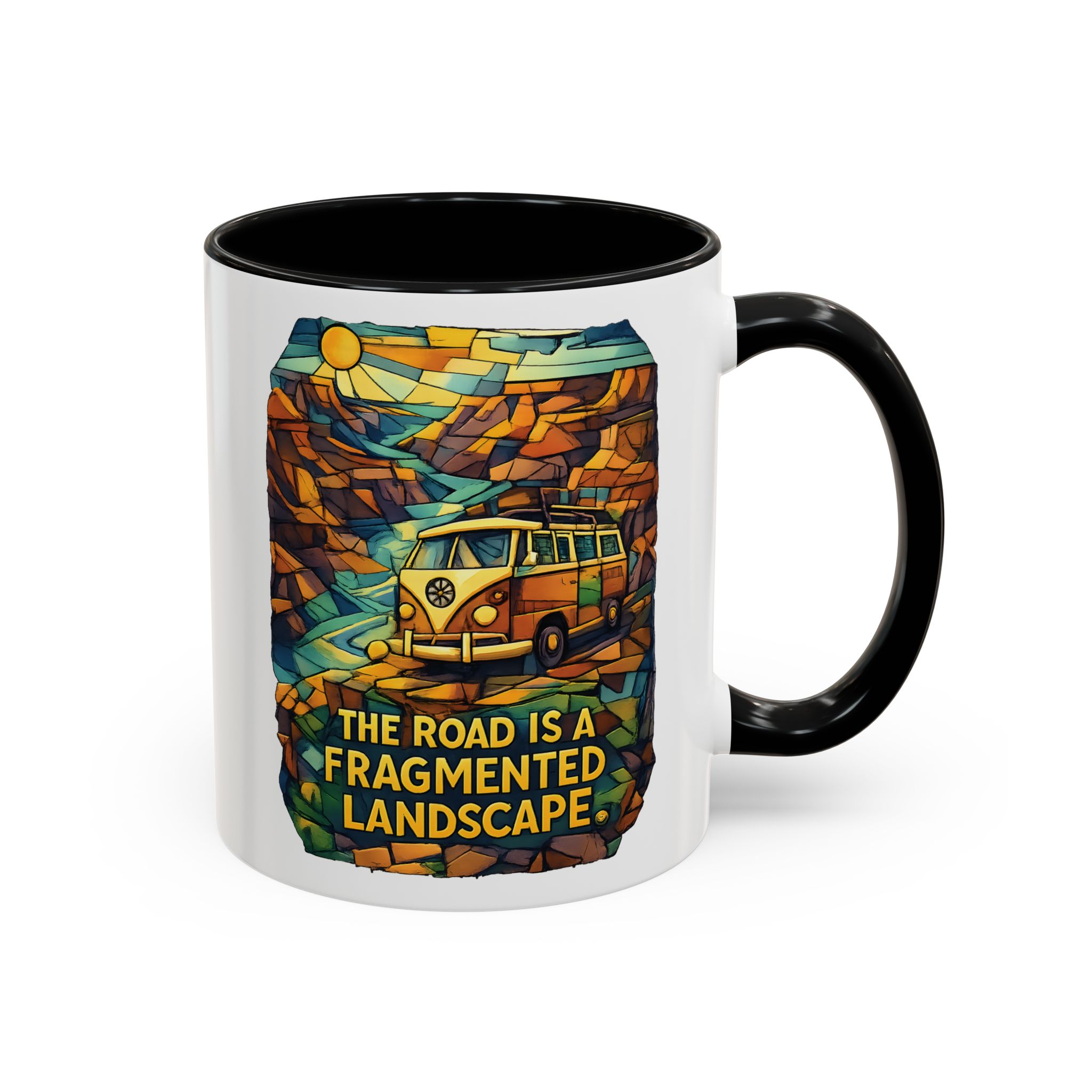 Accent Coffee Mug (11, 15oz) — “The Road Is A Fragmented Landscape” Design Cubic-Line