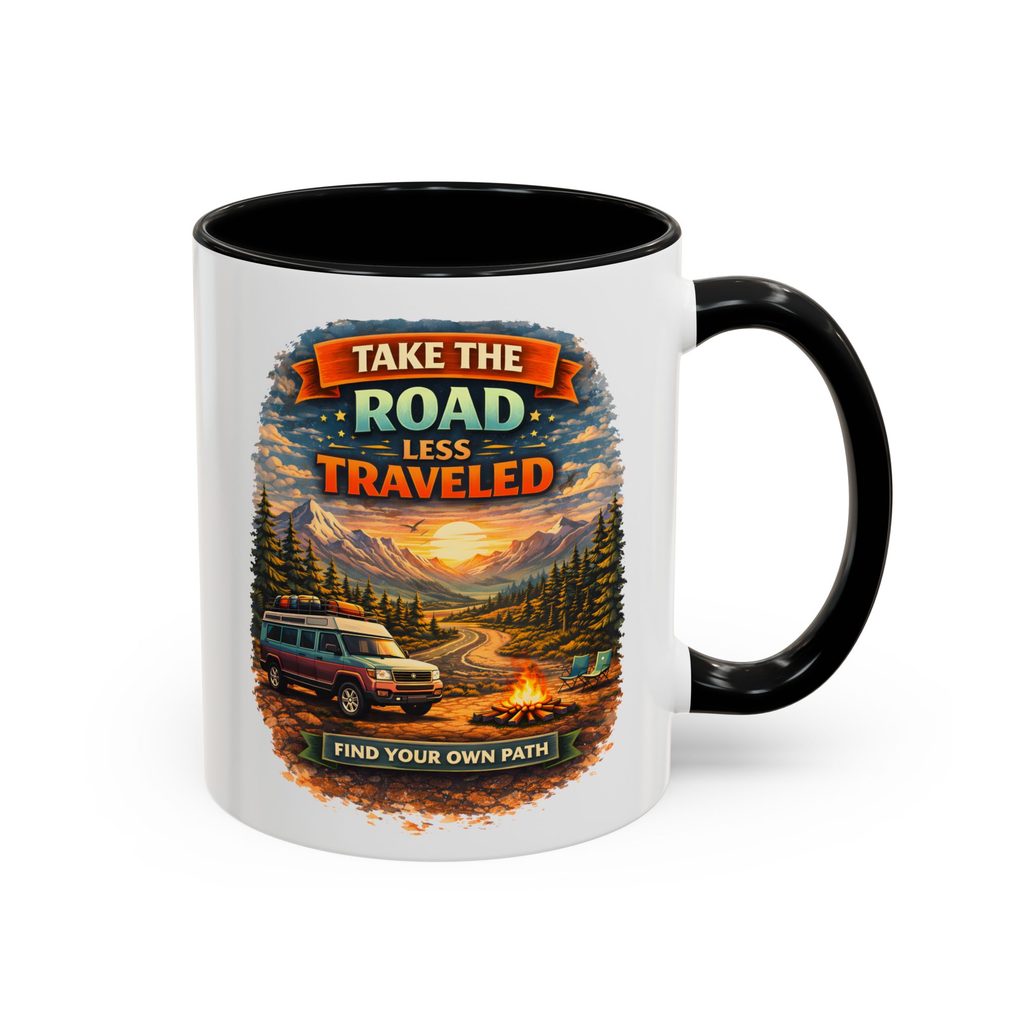 Accent Coffee Mug (11, 15oz) — “Take The Road Less Traveled” Design Scenic-Line