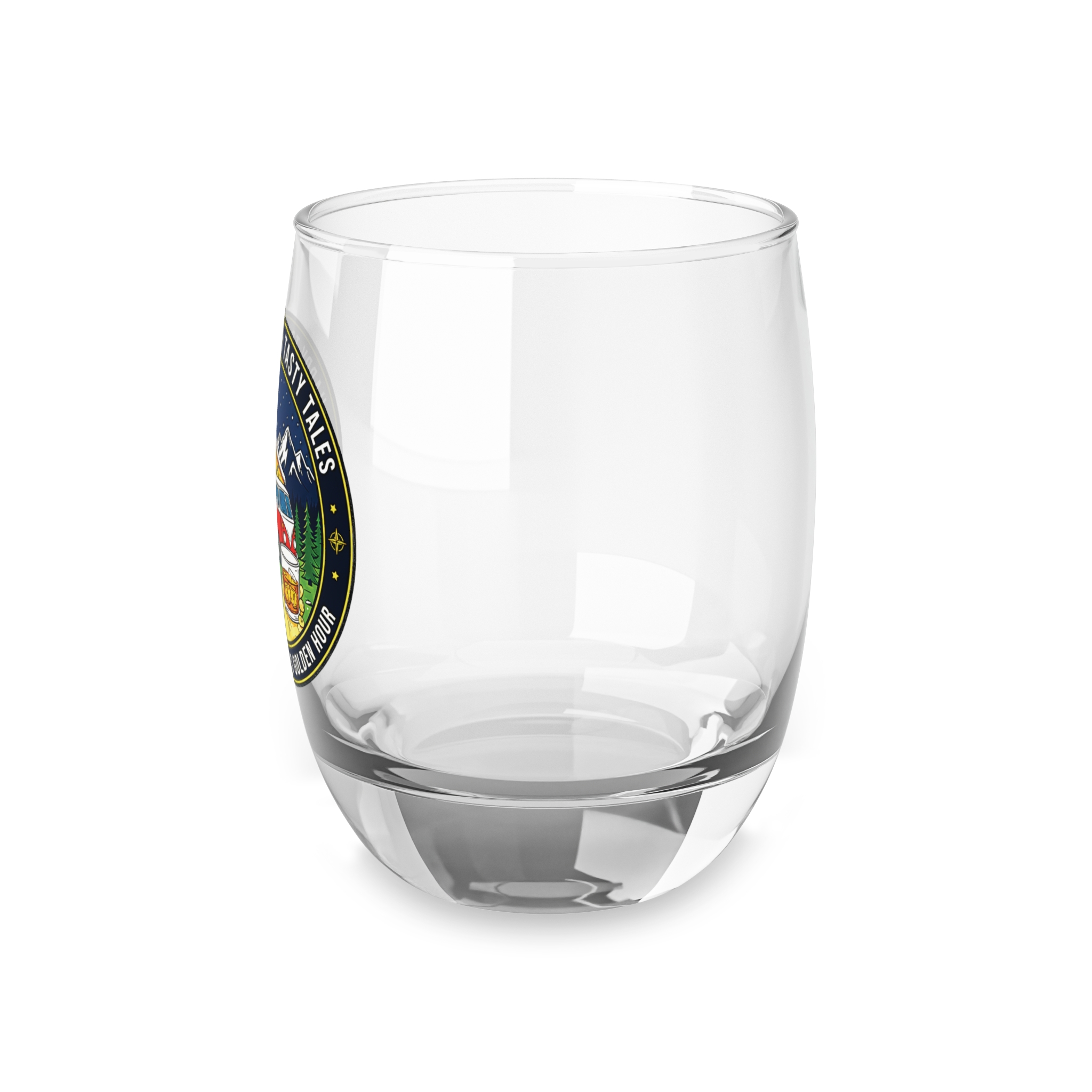 Whiskey Glass – ‘Happy Trails & Tasty Tales’ Camper Van Camping Whiskey Glass