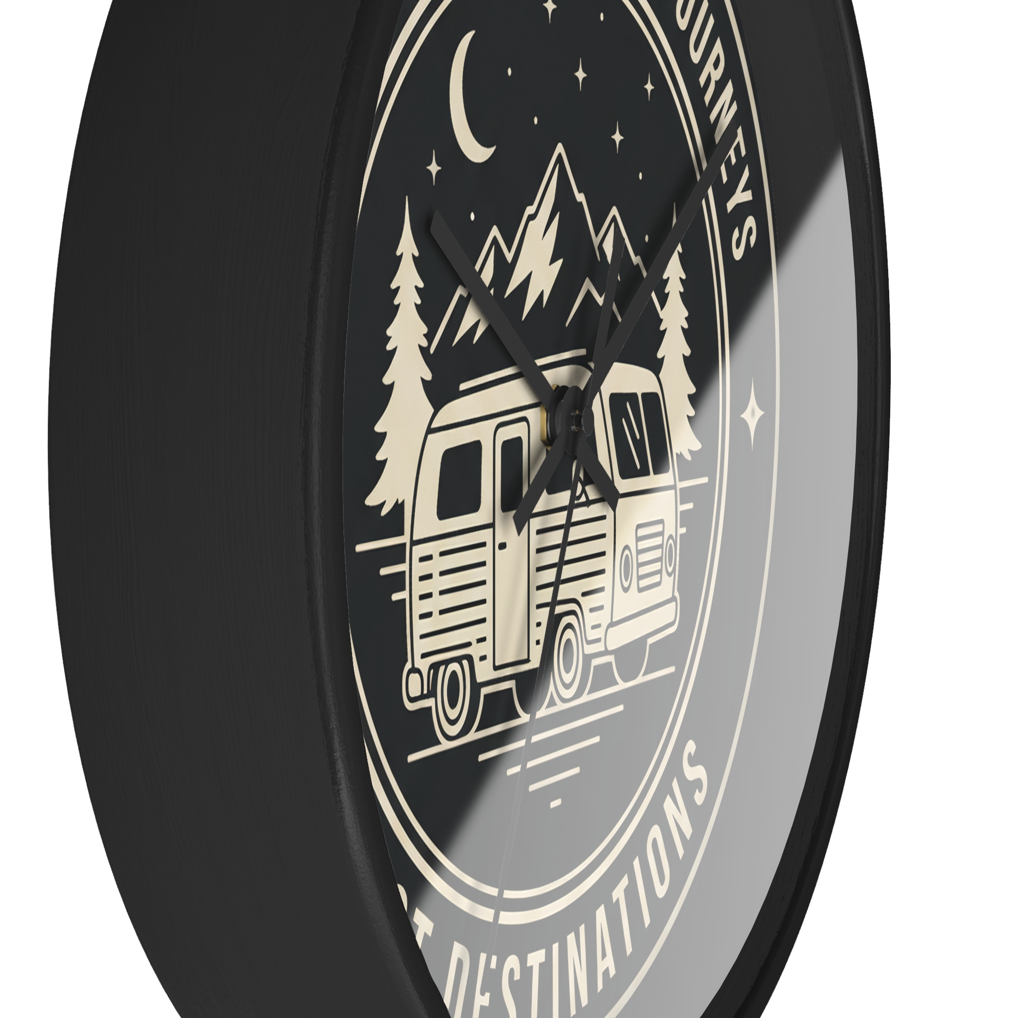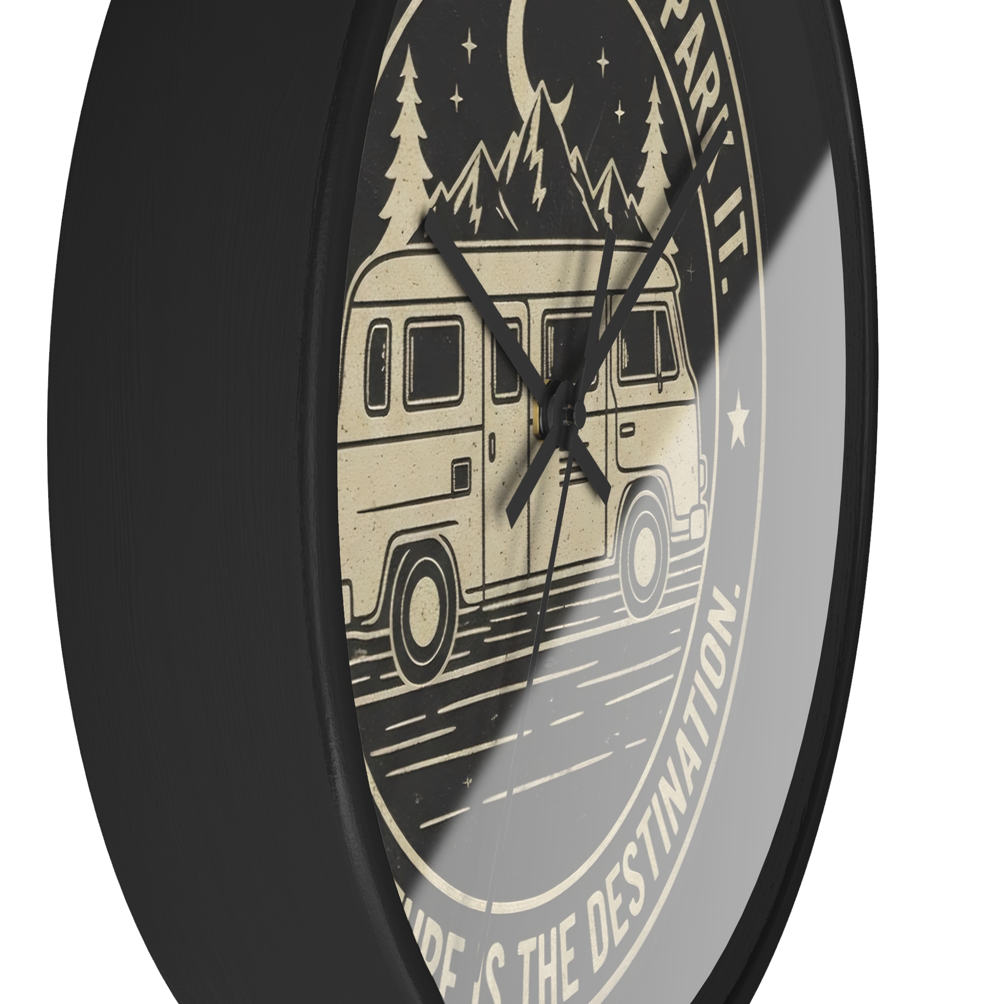 Wall Clock — “ROAD WHERE MADE FOR JOURNEYS-NOT DESTINATIONS” Camper Van Mountain Travel Timepiece