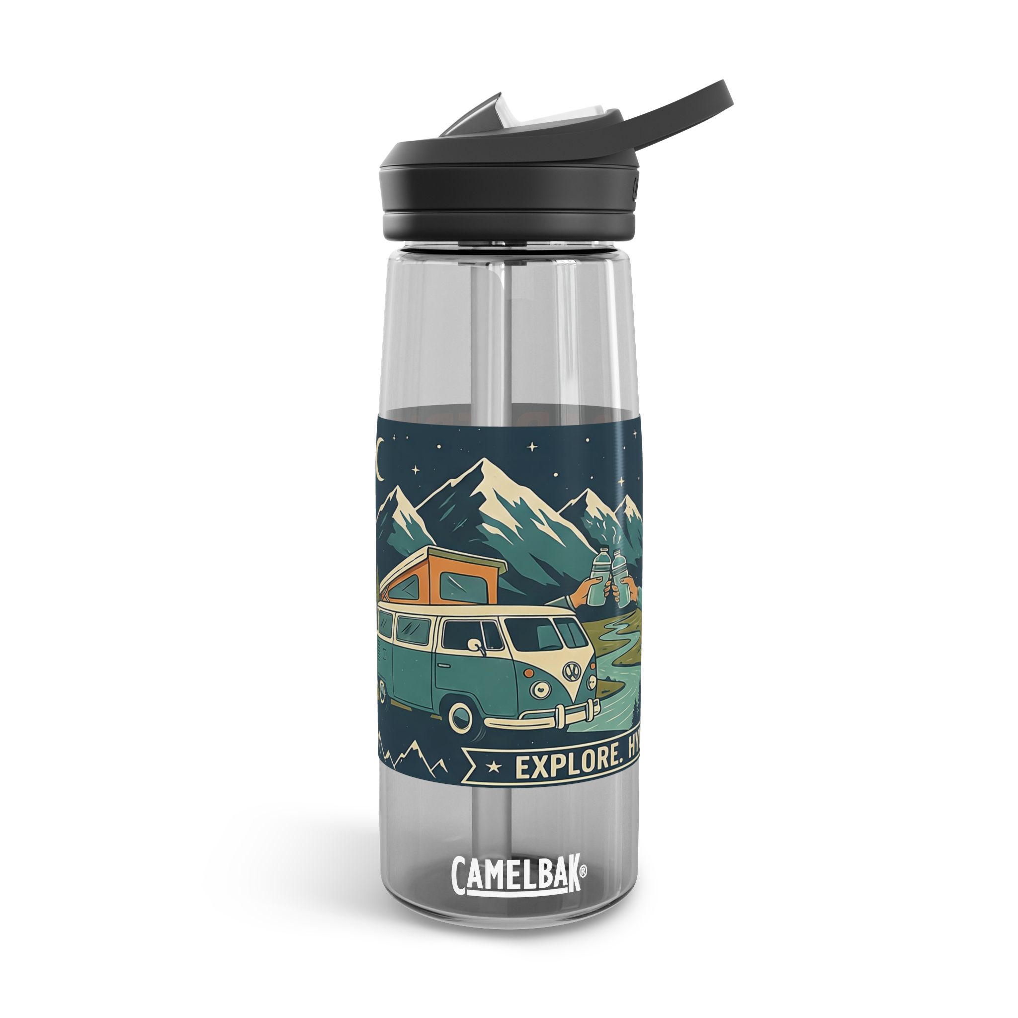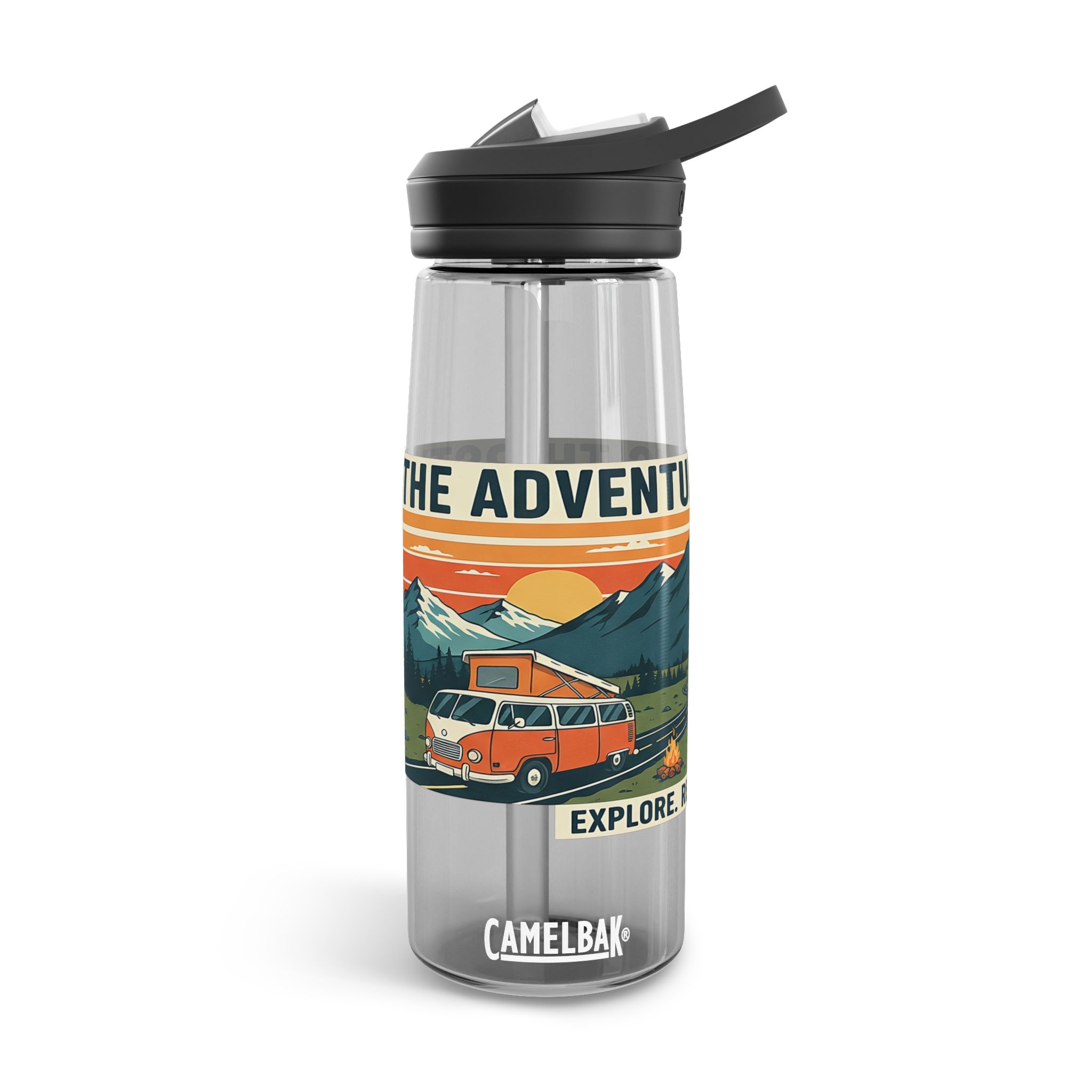 Water Bottle — 20/25oz CamelBak Eddy® | “Adventure Is Out There ” Retro Mountain & Van Camping Design
