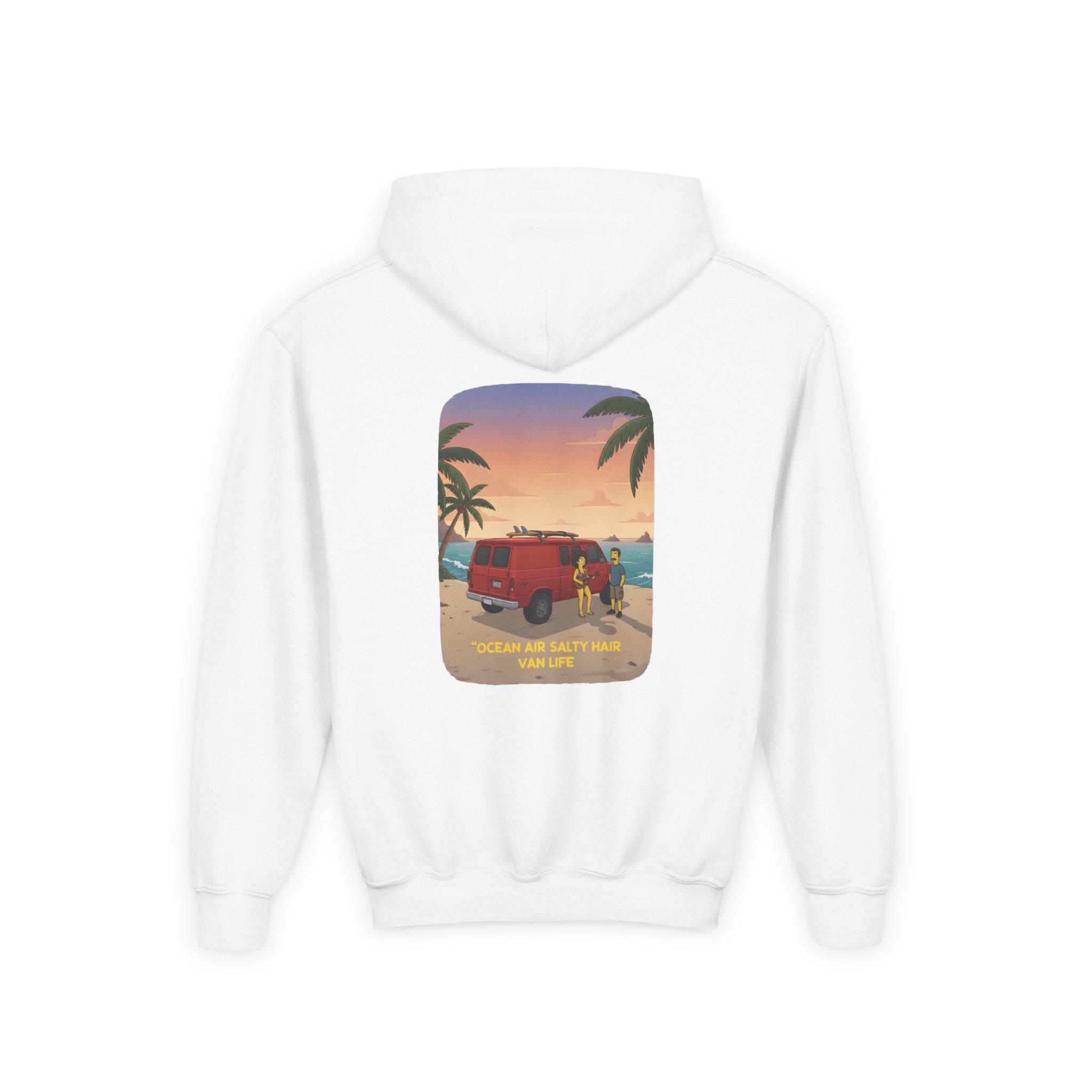 Youth Hoodie(Gildan) – “Ocean Air Salty Hair Van Life” (Design Sitcom-Line)