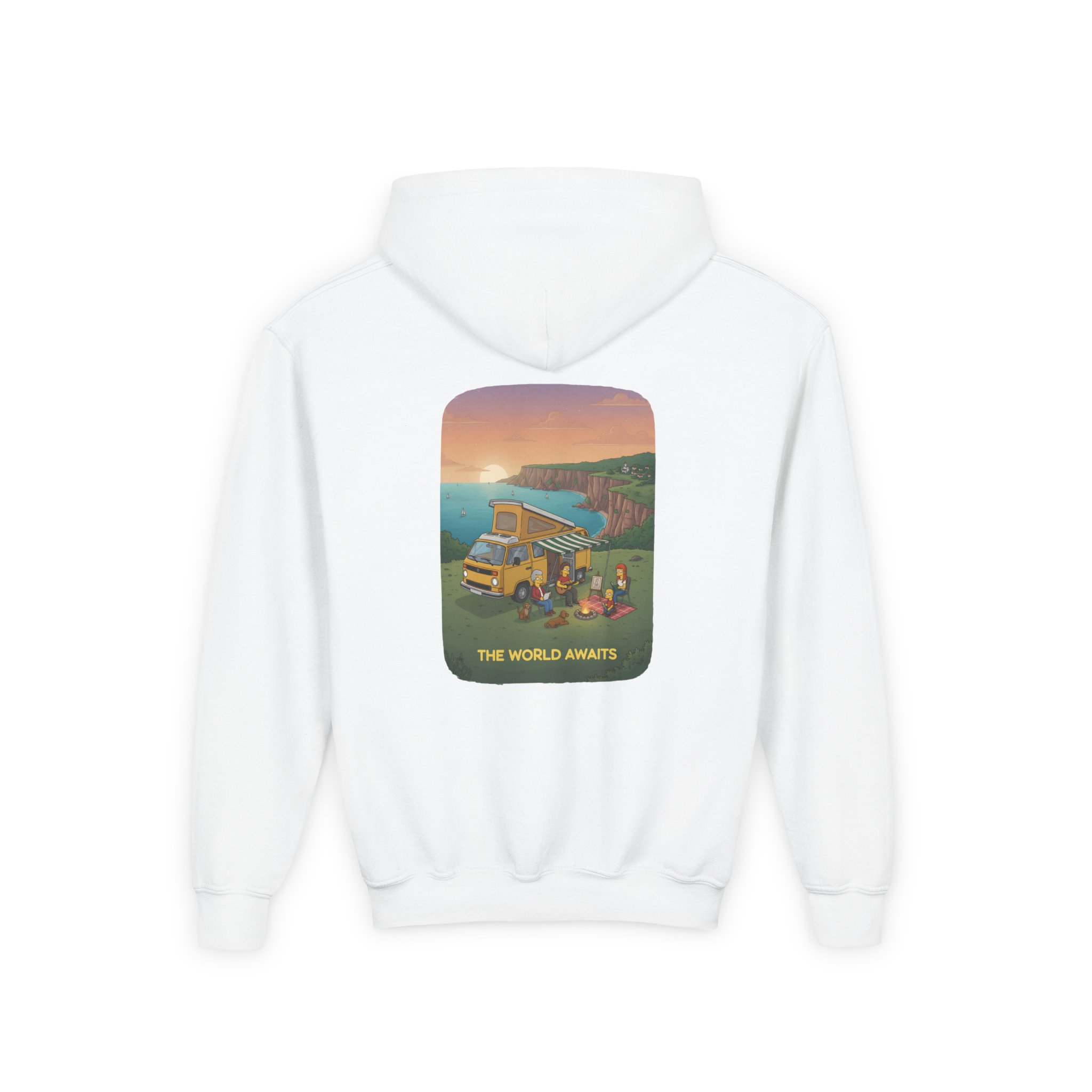 Youth Hoodie(Gildan) – “The World Awaits” (Design Sitcom-Line)