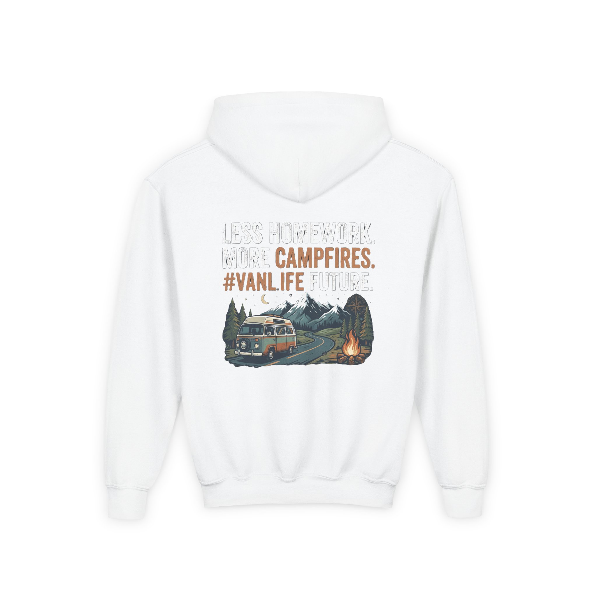 Youth Hoodie(Gildan) – Less Worry, More Campfires #VanLife Adventure Pullover