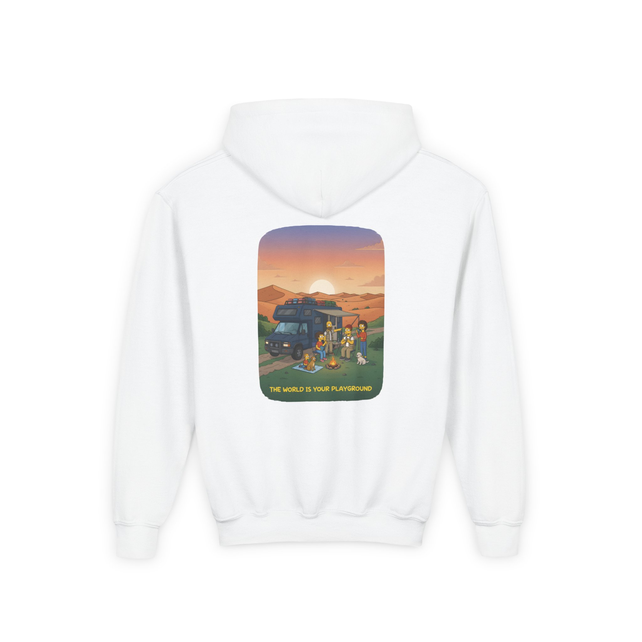 Youth Hoodie(Gildan) – “The World Is Your playground” (Design Sitcom-Line)