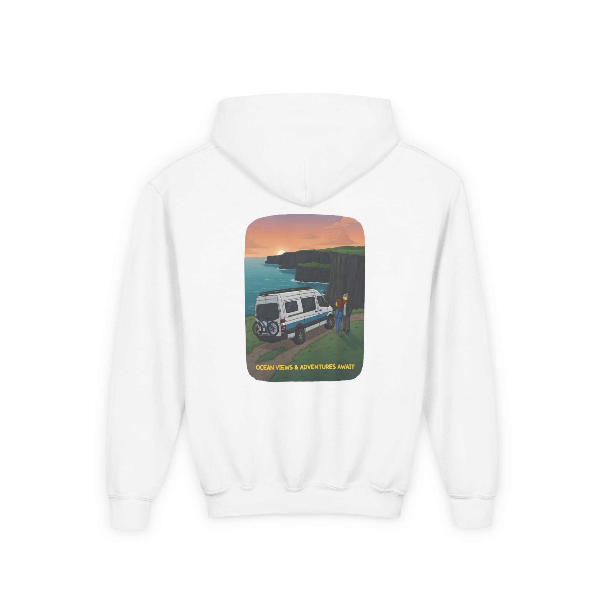 Youth Hoodie(Gildan) – “Ocean Views-Adventures Awaits” (Design Sitcom-Line)