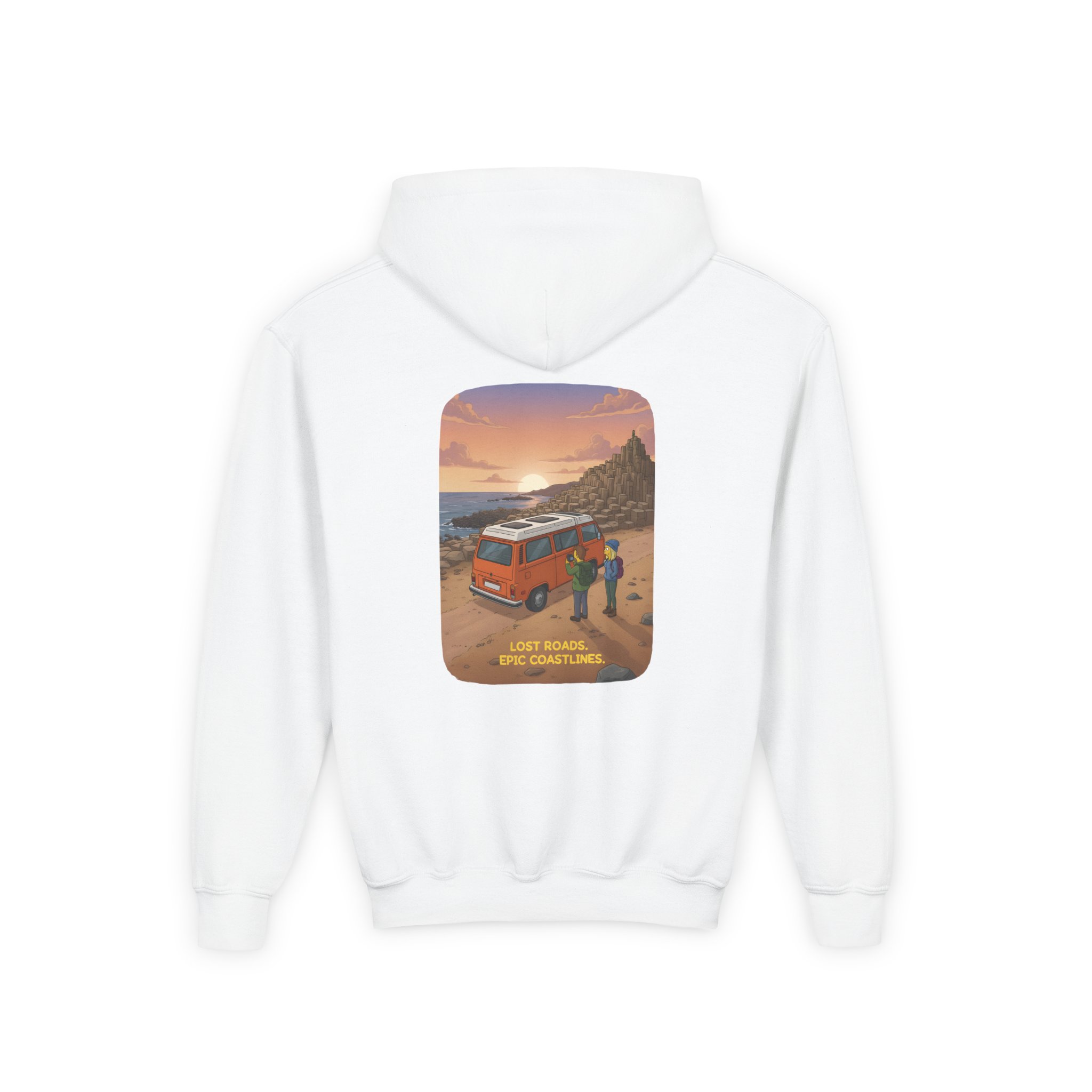 Youth Hoodie(Gildan) – “Lost Roads Epic Coastlines” (Design Sitcom-Line)