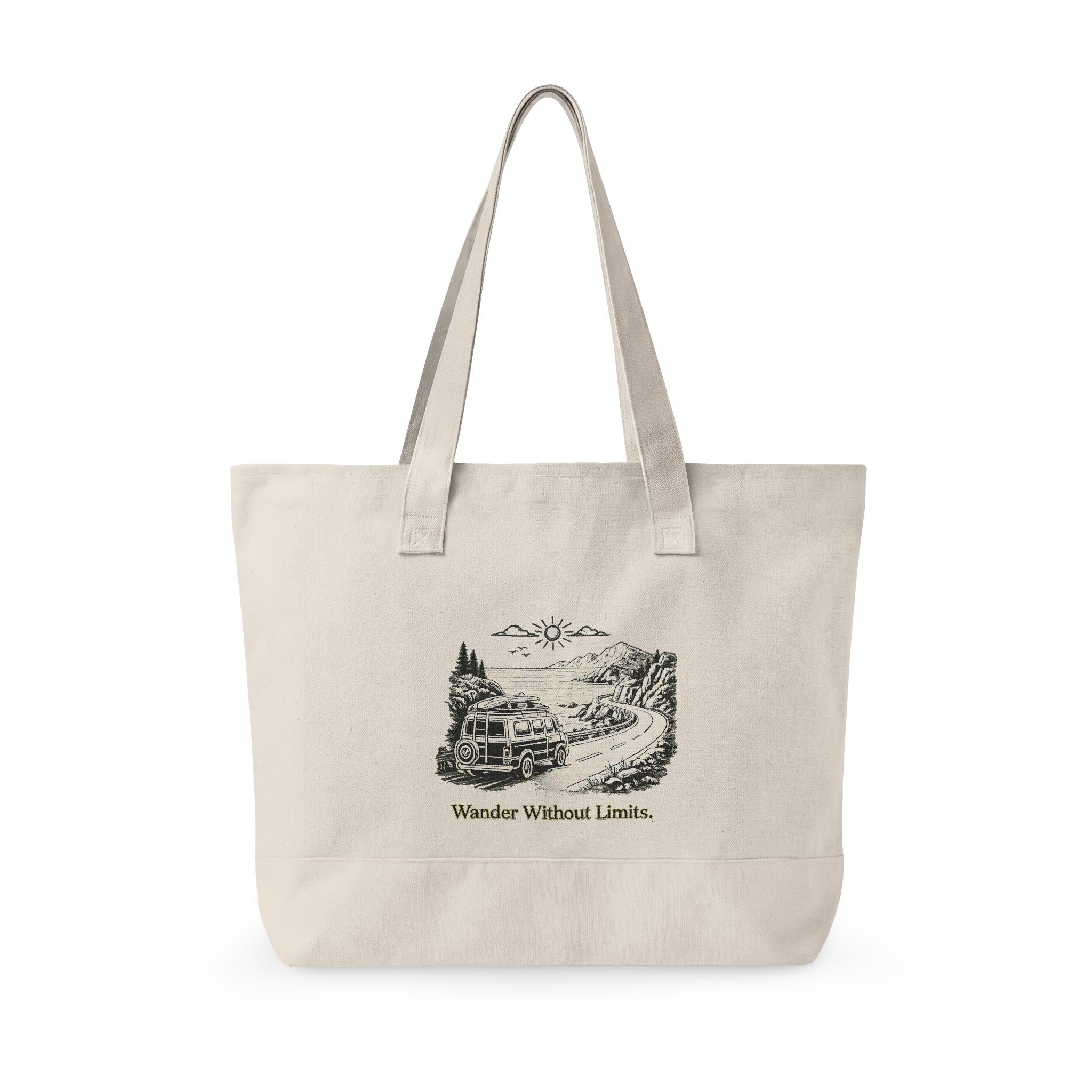 Zippered Canvas Tote — “Wander Whitout Limits” (Design Minimal-Line)