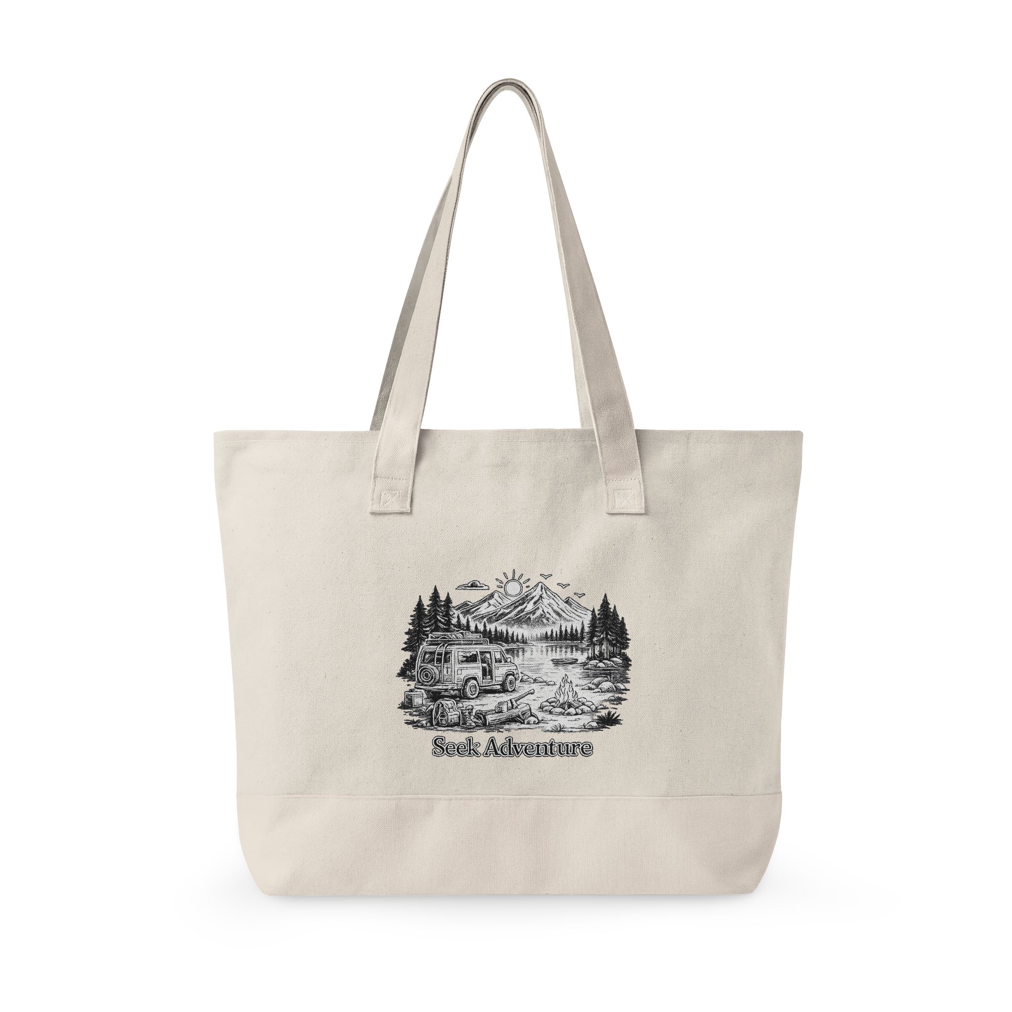 Zippered Canvas Tote — “Seek Adventure” (Design Minimal-Line)