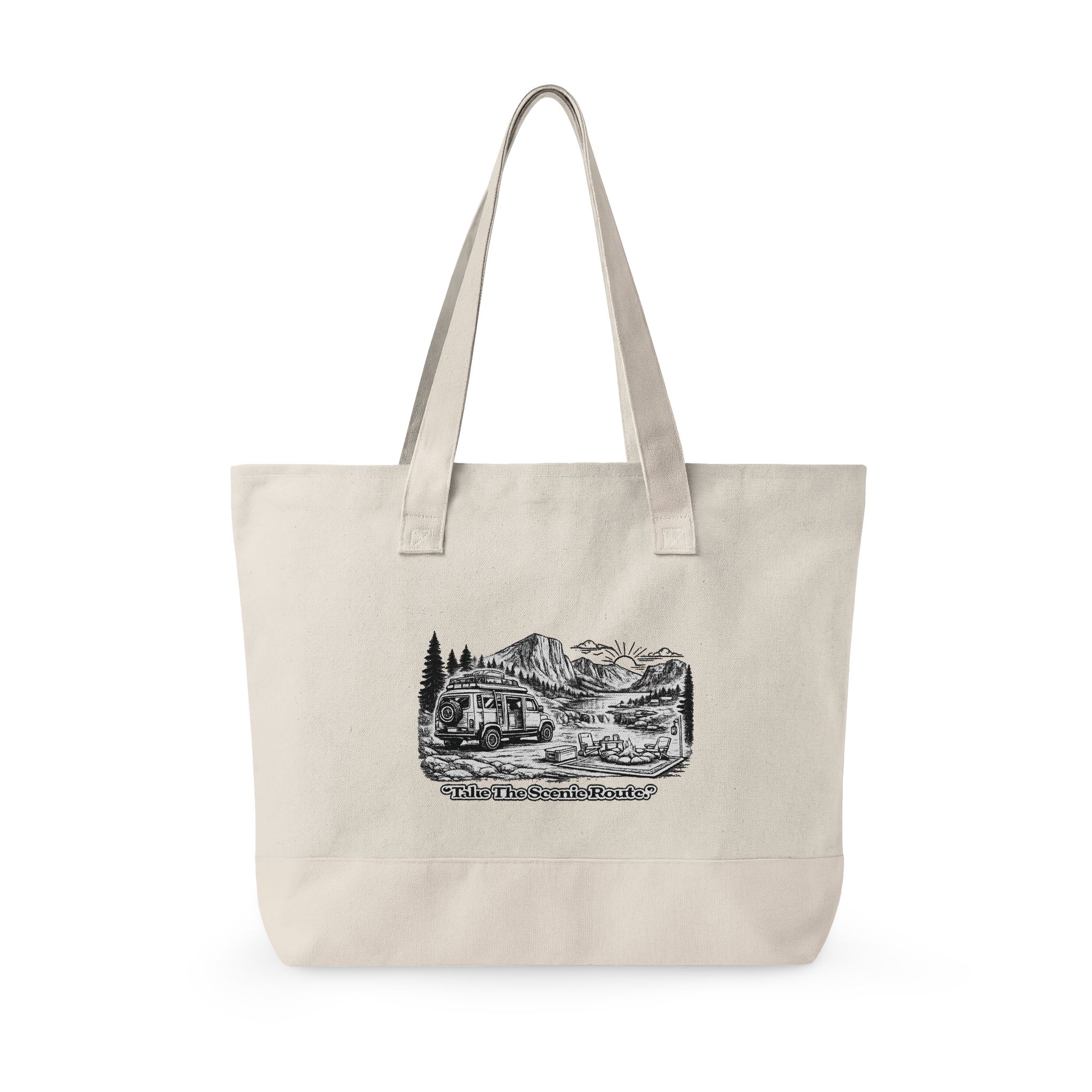 Zippered Canvas Tote — “Take The Scenic Road” (Design Minimal-Line)