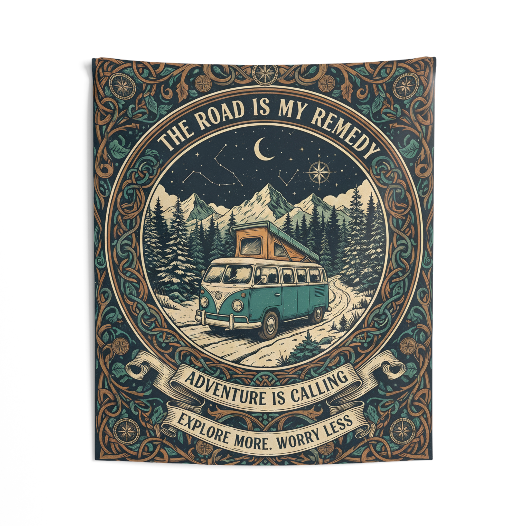 Adventure Van Tapestry — “The Road Is My Remedy” Wall Hanging