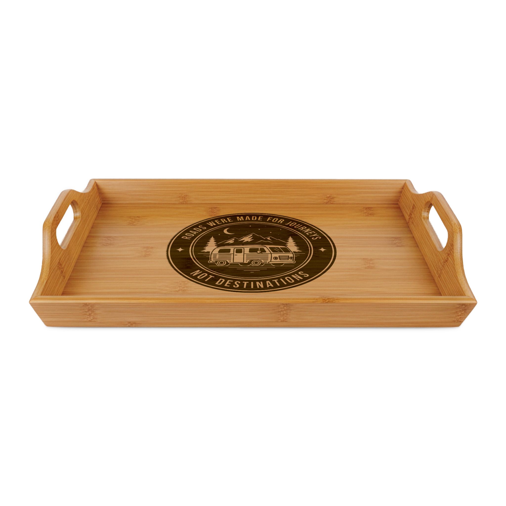 Bamboo Serving Tray — “ROAD WHERE MADE FOR JOURNEYS-NOT DESTINATIONS” Engraved Camper Tray